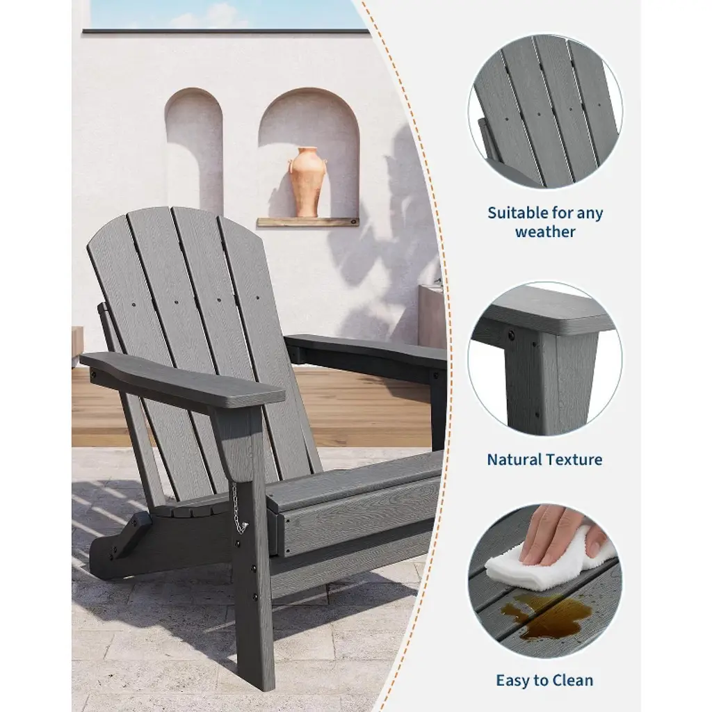 Folding Adirondack Chairs, HDPE Plastic Outdoor Chairs with Wood Texture - 380Lbs & Weather Resistant for Fire Pit, Deck, Patio, Pool, Backyard