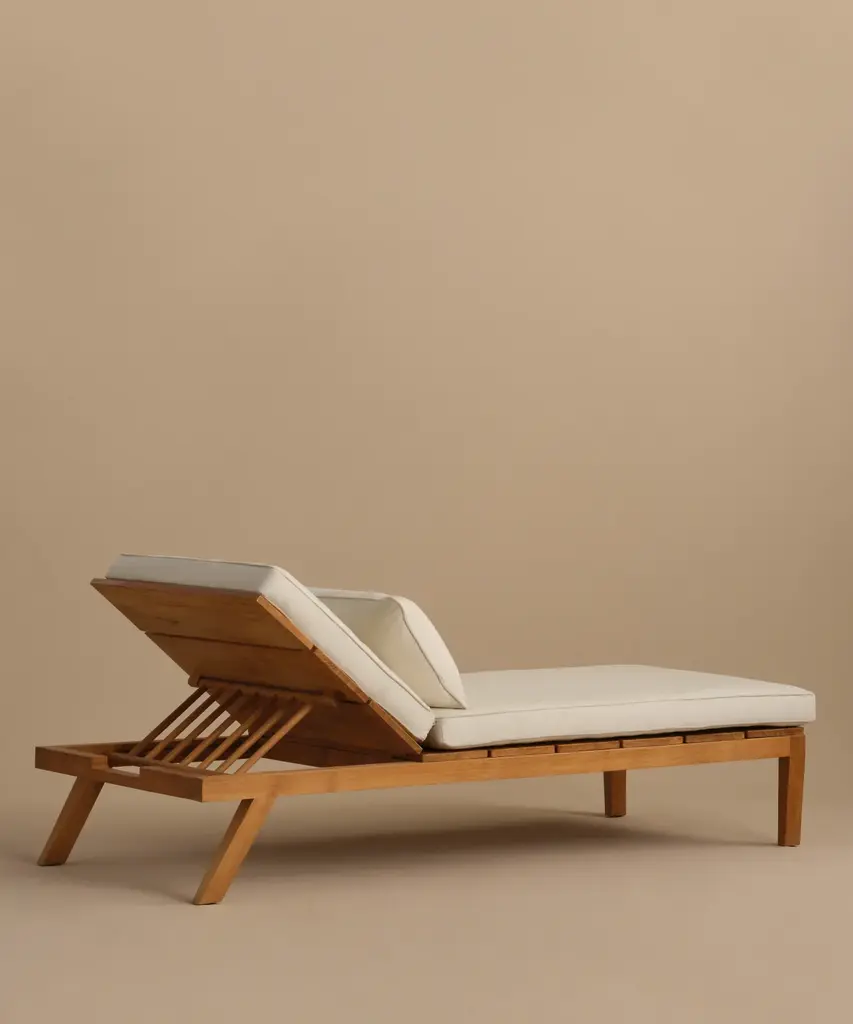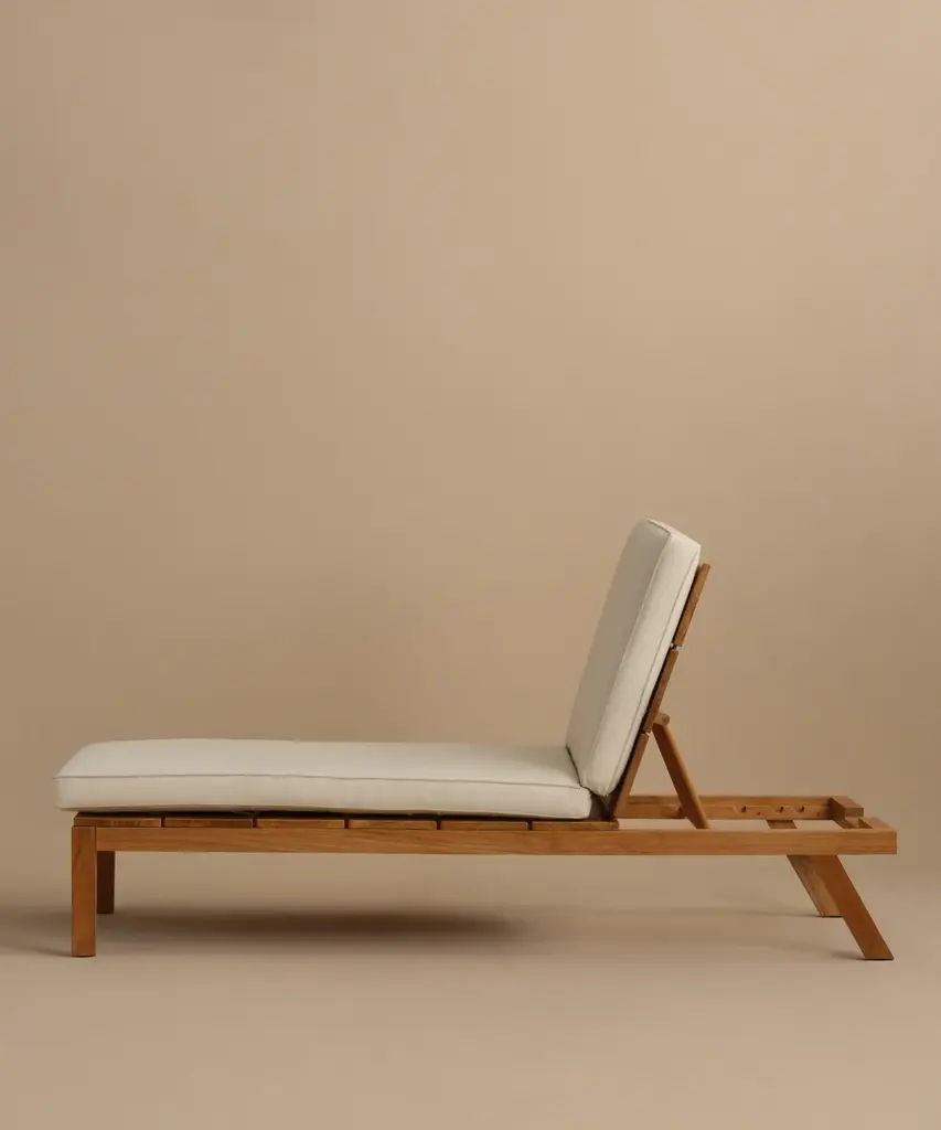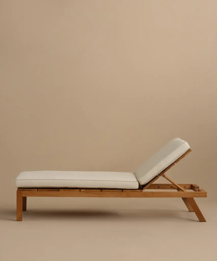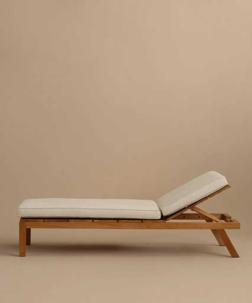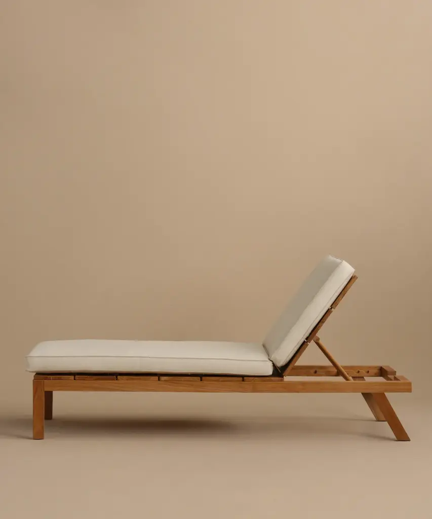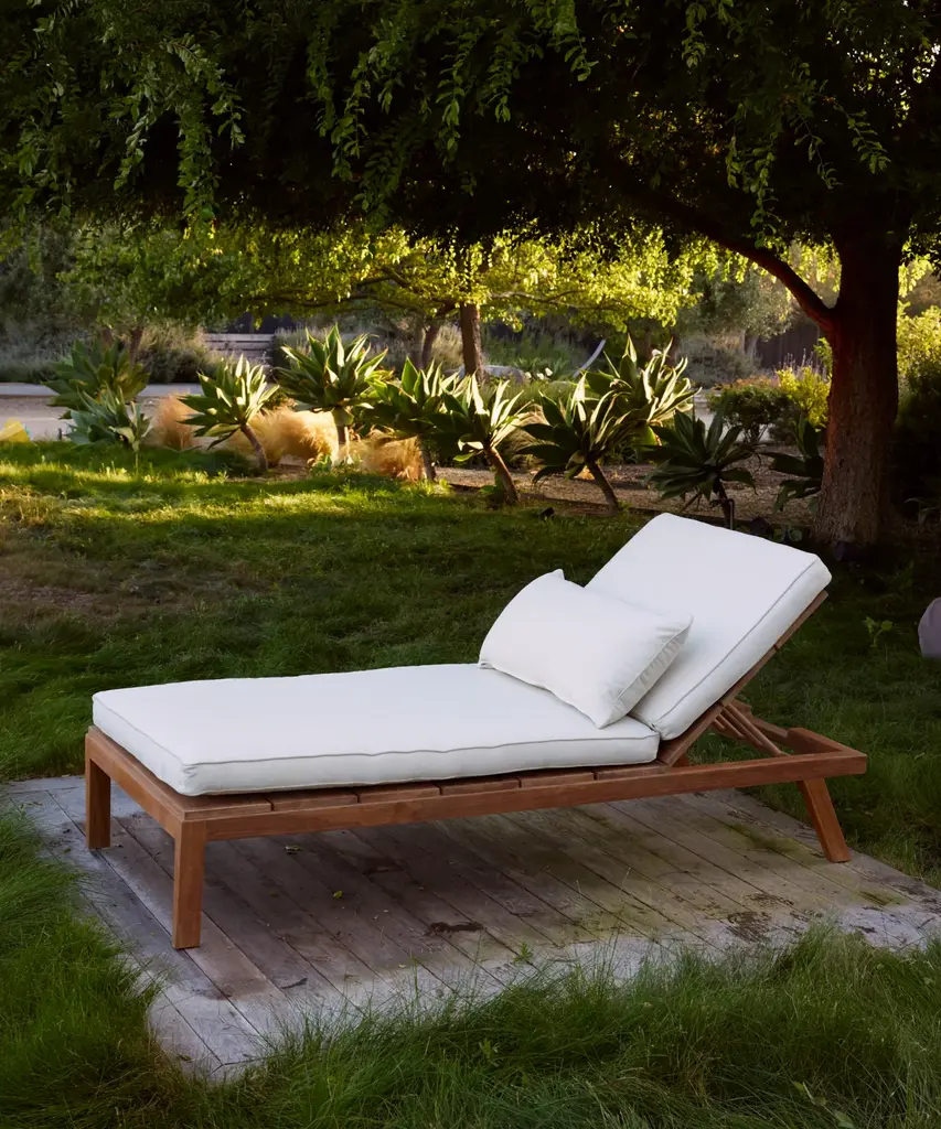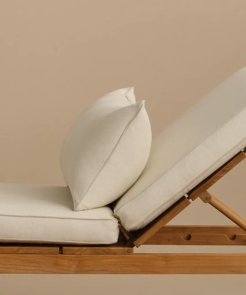 Outdoor Vista Lounge Chair Parchment/Latte Outdoor lounge chair made from solid sustainably-sourced, Grade-A teak with a natural finish. Features corrosion-resistant stainless steel hardware and a seat and back crafted from ECOLENE—engineered for superior durability, resistance to temperature fluctuations, and free from cracking, splintering, or corrosion, all while maintaining a natural look and feel. Includes cushion made with Italian Tempotest fabric and woven from 100% solution-dyed acrylic. The Tempotest fabrics are resistant to water, mold, and mildew. With the new CO finish, it is not resistant to oil, but any oil stains can be cleaned according to the cleaning instructions provided. Cushions include one seat cushion connected to a back cushion and an additional throw cushion, all with slipcovers with zipper closures. Includes outdoor foam cushion fill. For furniture purchases, please refer to our furniture inspection policy here, and for help styling this piece in your space, contact [email protected] for a complimentary consultation.CA Residents: Prop 65 Information