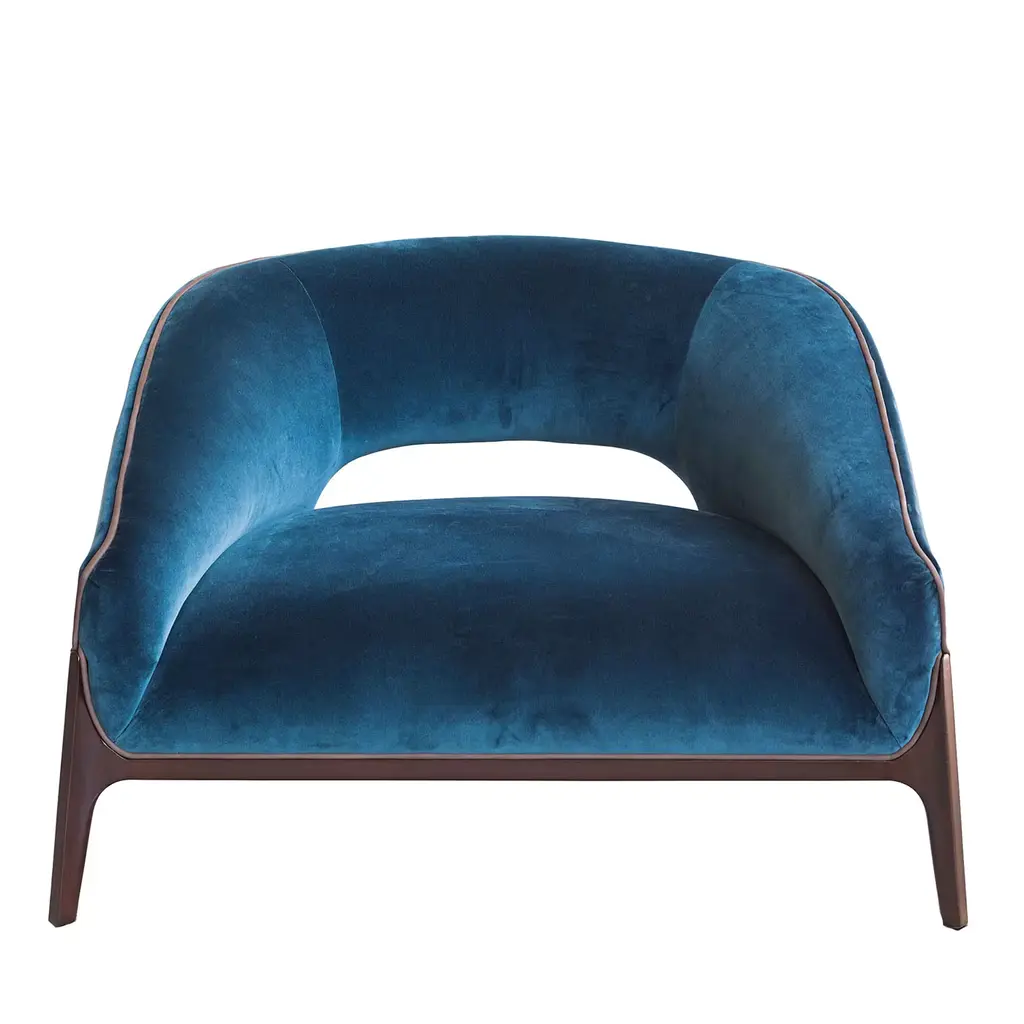 The GUBI Pacha Lounge Chair with Armrests realizes Pierre Paulin's visionary concept of "sitting on clouds" while adding supportive elements that enhance both function and comfort. This sophisticated variation of the iconic 1975 designâ€"once ahead of its time and now perfectly aligned with contemporary sensibilitiesâ€"preserves the revolutionary essence of Paulin's work while offering additional ergonomic benefits. The addition of gracefully integrated armrests transforms the Pacha's floating, cloud-like form into an even more complete sanctuary. These sculptural extensions emerge organically from the main body, providing gentle support for extended relaxation without compromising the chair's radical low-level living concept that challenged traditional seating conventions by eliminating standard legs. Paulin's genius reveals itself in the chair's masterful proportions and organic architecture. The curvaceous, whimsical silhouette, carefully traced with inward-inclining stitching lines, creates an embracing experience that seems to defy gravity. This sophisticated construction transforms a radical design concept into an elegantly resolved form that looks as contemporary today as it did during the height of French modernism. Part of GUBI's thoughtfully reissued Pacha Collection, this armrest version can be customized in an extensive array of fabrics and materials. The distinctive silhouette confidently carries bold colors and tactile expressions, allowing for personalization while maintaining the design's iconic character. When upholstered in premium materials like velvet or leather, the chair develops intentional wrinkles along its curved seamsâ€"a characteristic that adds to its sensual, lived-in appeal. Whether placed as a standalone statement piece or combined with other Pacha modules to create endless seating possibilities, this evolved version continues to epitomize the freedom and creativity of 1970s French design. The Pacha with Armrests offers a perfect balance of historical significance and practical functionality, creating an inviting cocoon for today's relaxation needs across both residential interiors and sophisticated commercial environments. For thicker materials such as leather and velvet, there will be some wrinkling along the curved seams of Pacha. This is intentional and inherent to the upholstery process.
