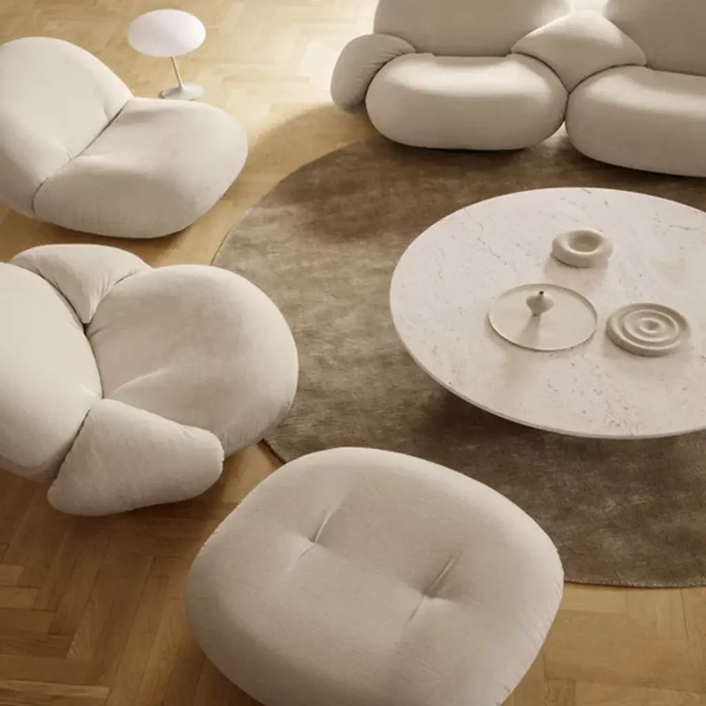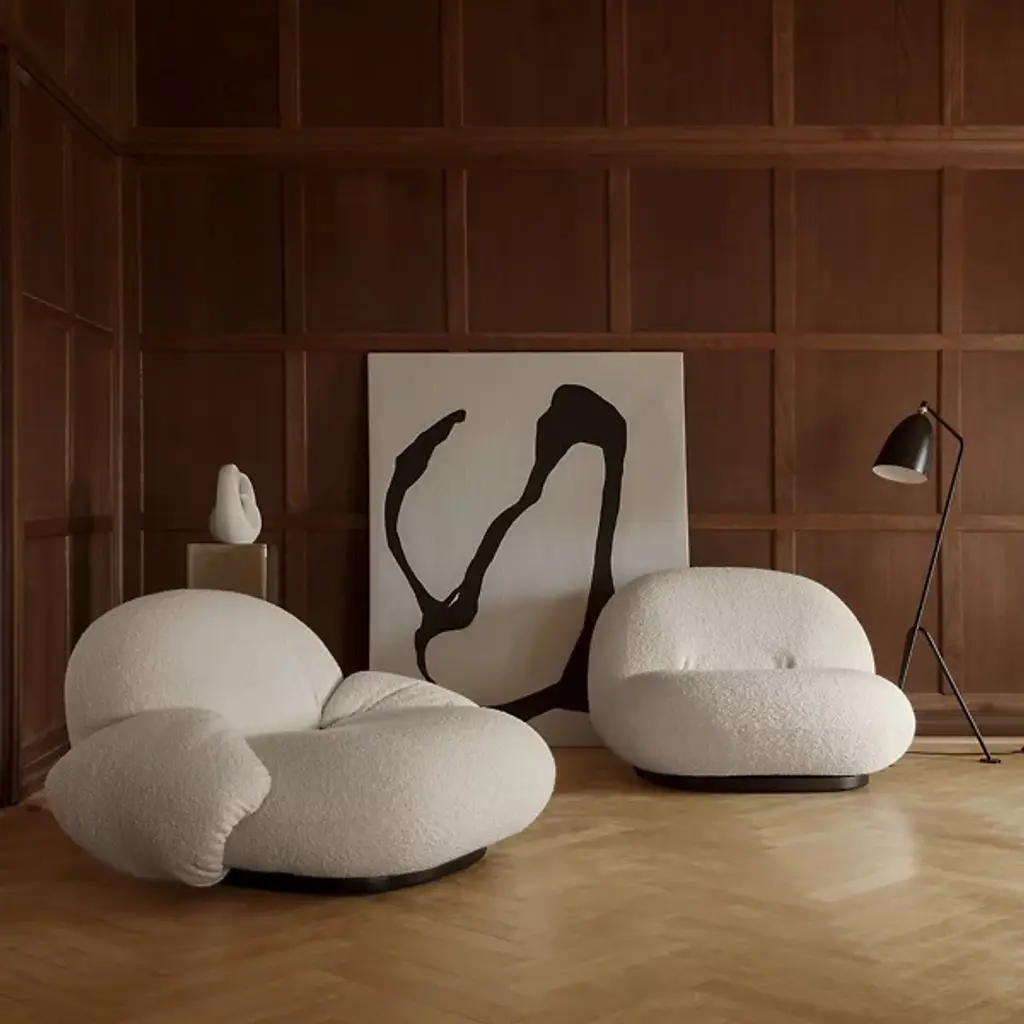 Designed to evoke the sensation of sitting on clouds, the Pacha Lounge Chair with Armrest from GUBI envelops the body with a sumptuous, filling, and low-profile form. Bringing a sculptural approach to design, visionary creator Pierre Paulin aims for the perfect proportions in this piece. With Pacha, Paulin introduced a revolutionary legless construction that makes the chair easier to jump into. Atop the base rests plump foam shaped to lean one back and hug the body. The plushy interior receives a textured upholstery that's soft on the hands. This upholstery sports inward stitching to accentuate the chair's cloud-like silhouette.