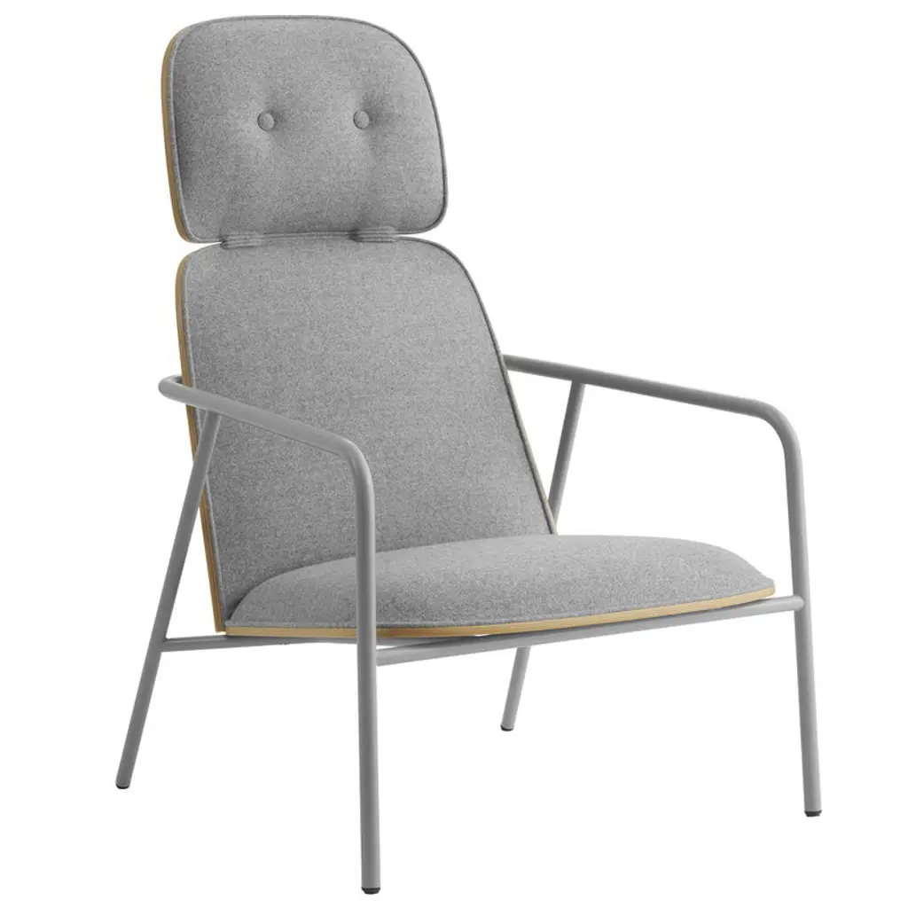 The Pad lounge series attains its special character from the combinations of materials, tactility and shape. Molded shells in oak veneer stand in contrast to a soft padded front, while a metal frame adds strength and airiness. In full, a balanced design, which captures the comfortable and the streamlined, the classic and the foresighted. Pad lounge chairs are made up of a solid steel frame, in which sections of strong oak veneer form the backrest and seat. The veneer is fitted with molded PU foam, which is then upholstered by skilled upholsterers. The shape is boxy, yet perfectly rounded; Organic texture and warmth flirt with cool shine in the meeting of wood, textile and steel. The front-padded design is as comfortable as it is elegant, making Pad the perfect addition to the sophisticated lounge or lobby.