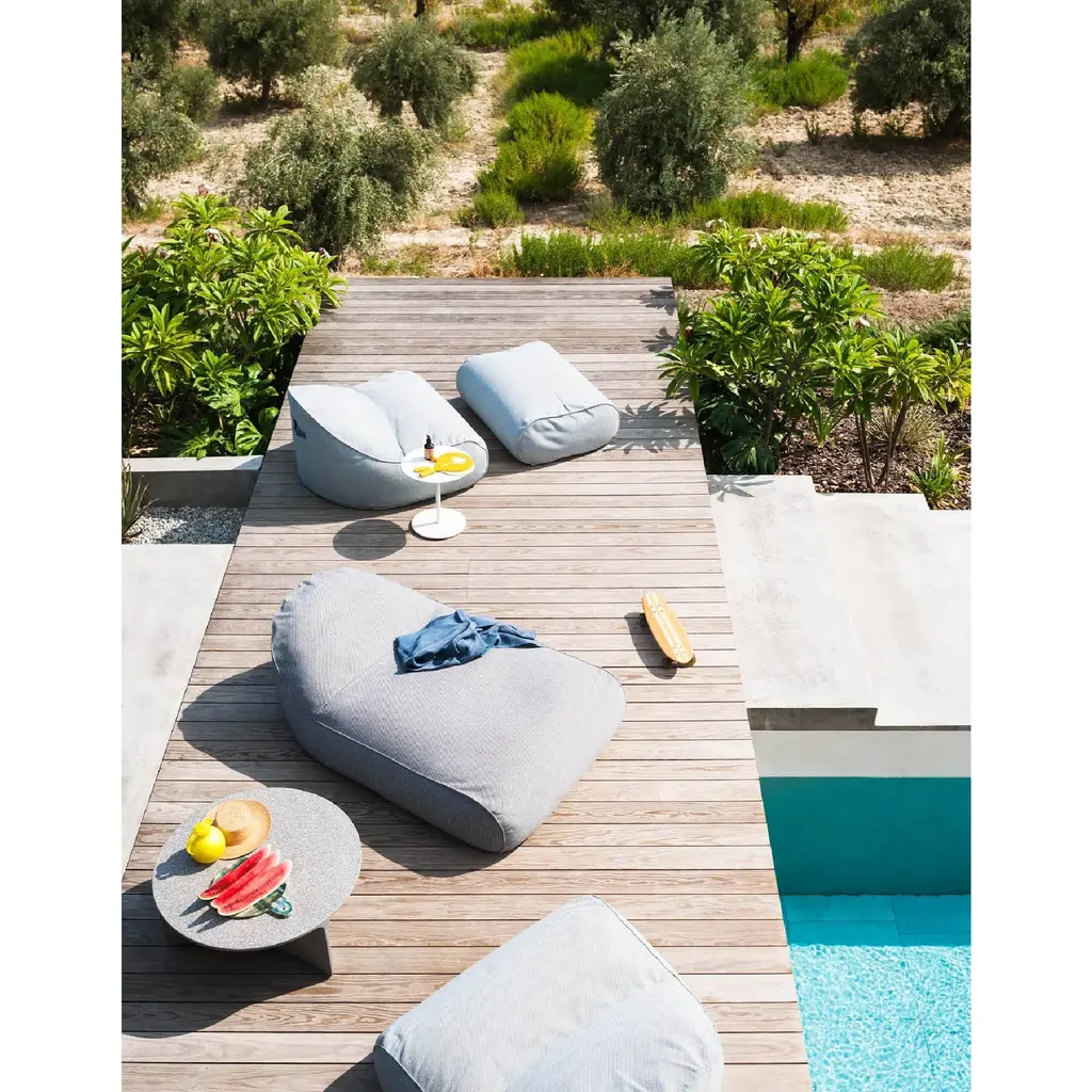 Onda is a collection made up of soft and compact upholstered seats that invites you to relax between fluid geometries and destructured volumes. Lounge-chair, chaise-longue and pouf come together in a family ready to animate the atmosphere of refined informality and to offer enveloping comfort both in outdoor spaces and in soft contract environments.