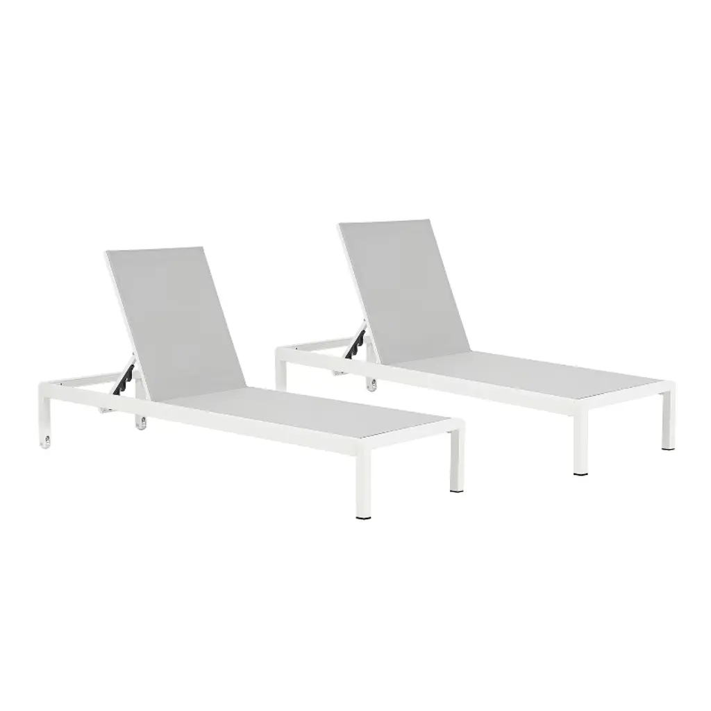 Paged Patio Chaise Lounges Set Of 2 Aluminum Frame Recliner With Mesh Modern Lounge Chair For Garden, Poolside, Gray White