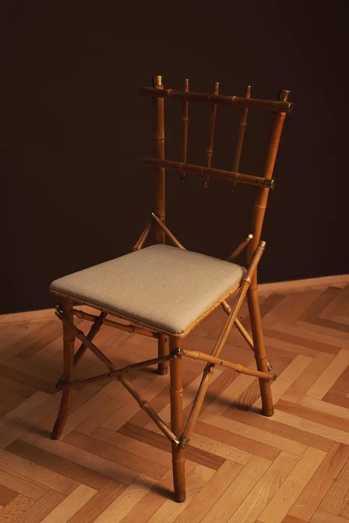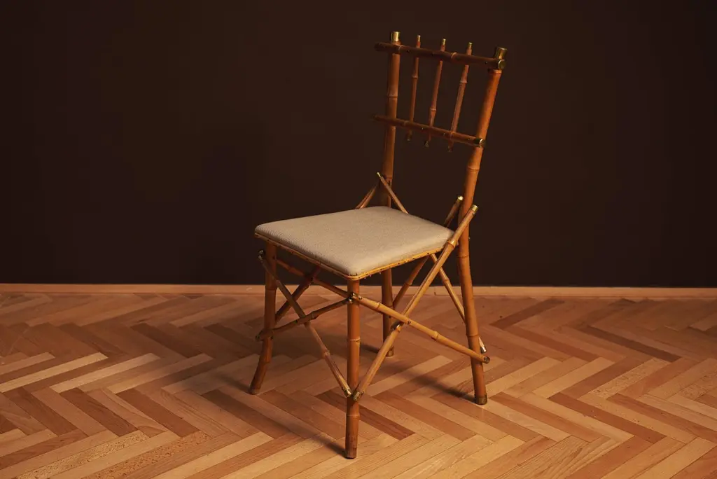 Pair of Bamboo Side Chairs by Kothgassner, Vienna, circa 1880Austro-Hungarian design – rare 19th-century craftsmanship – Japonesque influenceBamboo furniture is not only cherished in faraway places — historically, Vienna itself was enamored with bamboo seating, particularly with pieces from the renowned company Kothgassner. Known for their production of bamboo and so-called “fantasy furniture,” the firm operated a workshop right here on Gumendorferstraße 57. These rare seating pieces, now over 120 years old, have been expertly restored, newly upholstered, and are ready to bring their unique charm into a contemporary setting. With their rich history and refined craftsmanship, they await new owners who appreciate timeless design with a story to tell.Expertly crafted from natural bamboo, the chairs exhibit refined proportions, intricate joinery, and a graceful patina developed over nearly a century and a half. Their lightweight appearance is complemented by exceptional structural integrity, likely supported by a hidden hardwood subframe beneath the surface detailing.These chairs capture the spirit of the Viennese taste and cross-cultural design during the fin de siècle period of the Austro-Hungarian Empire. Ideal for use as decorative side chairs, in an entryway, or as accent pieces in a refined interior.