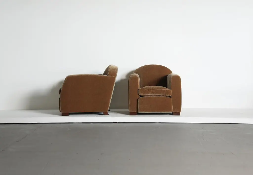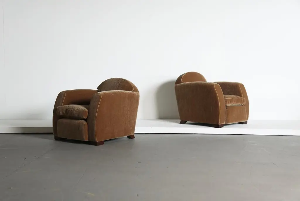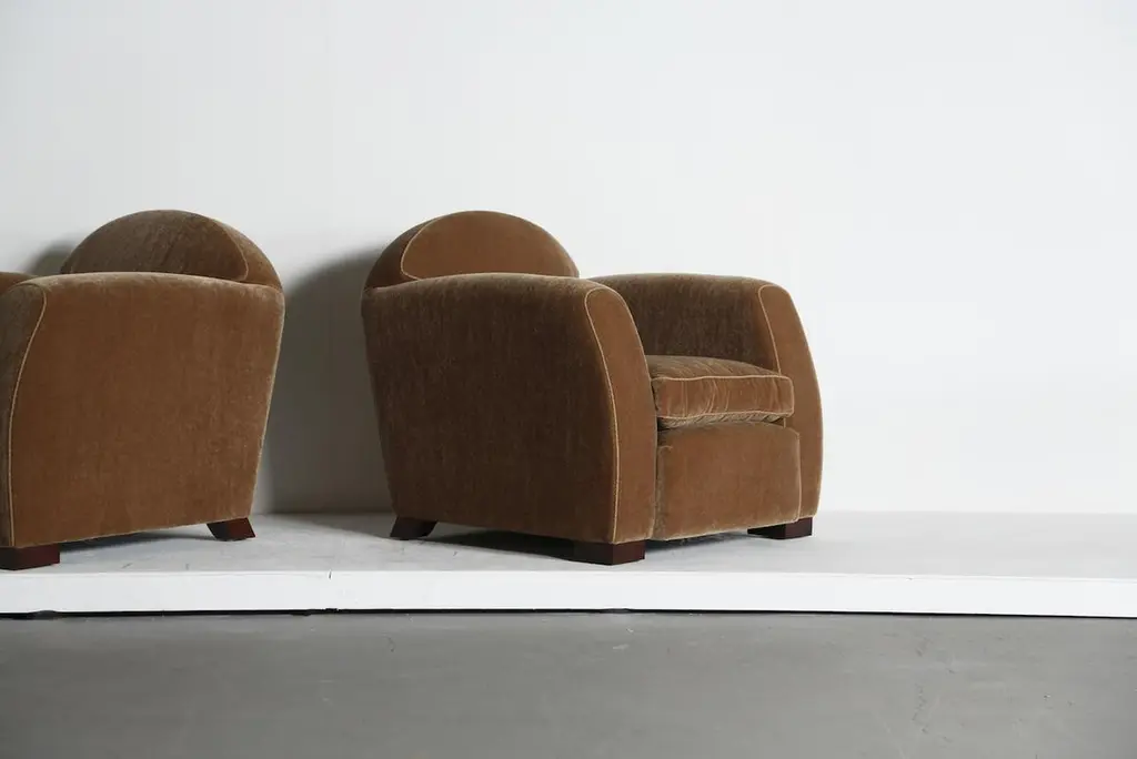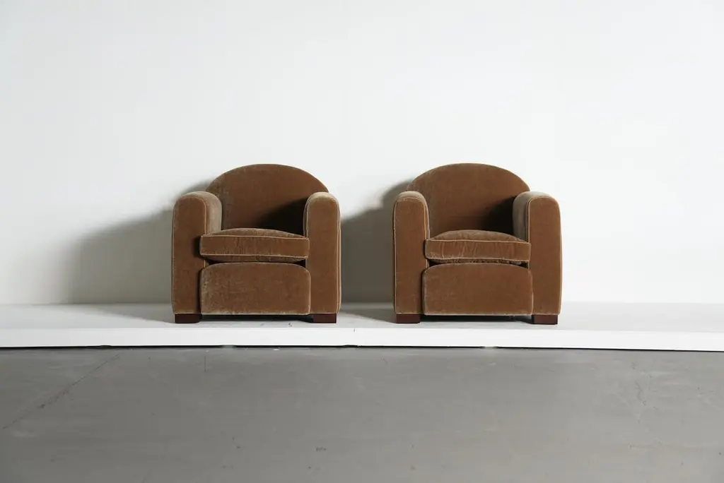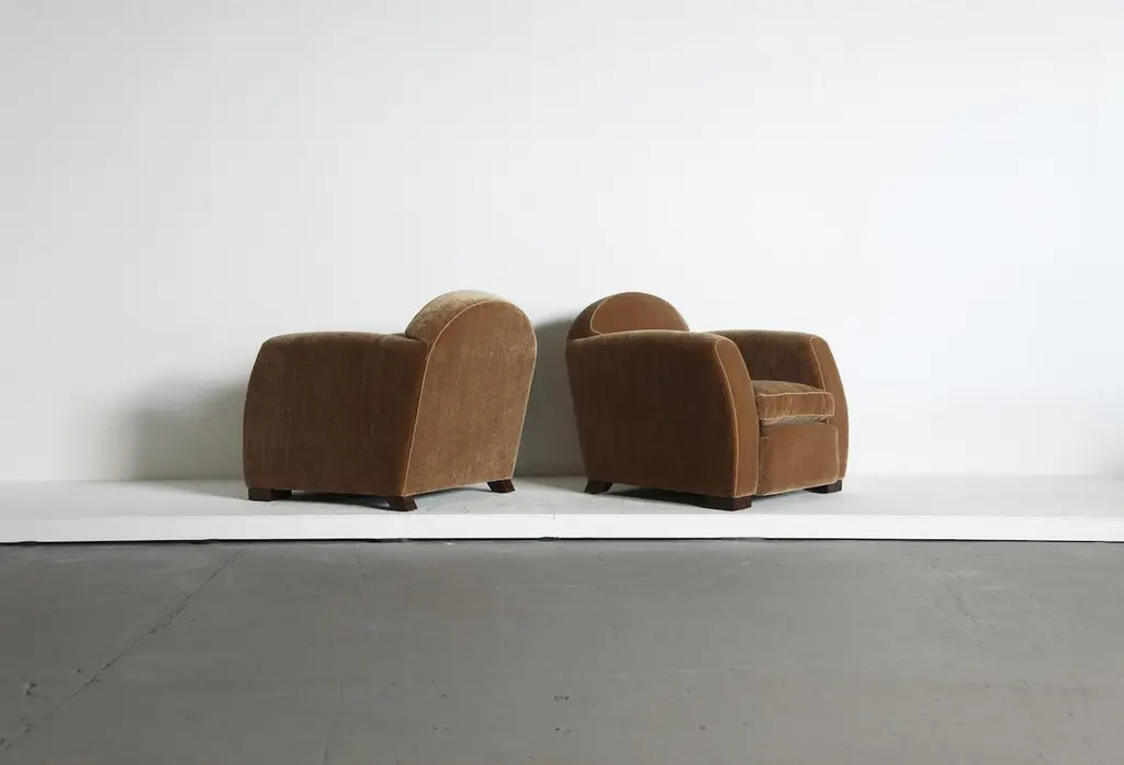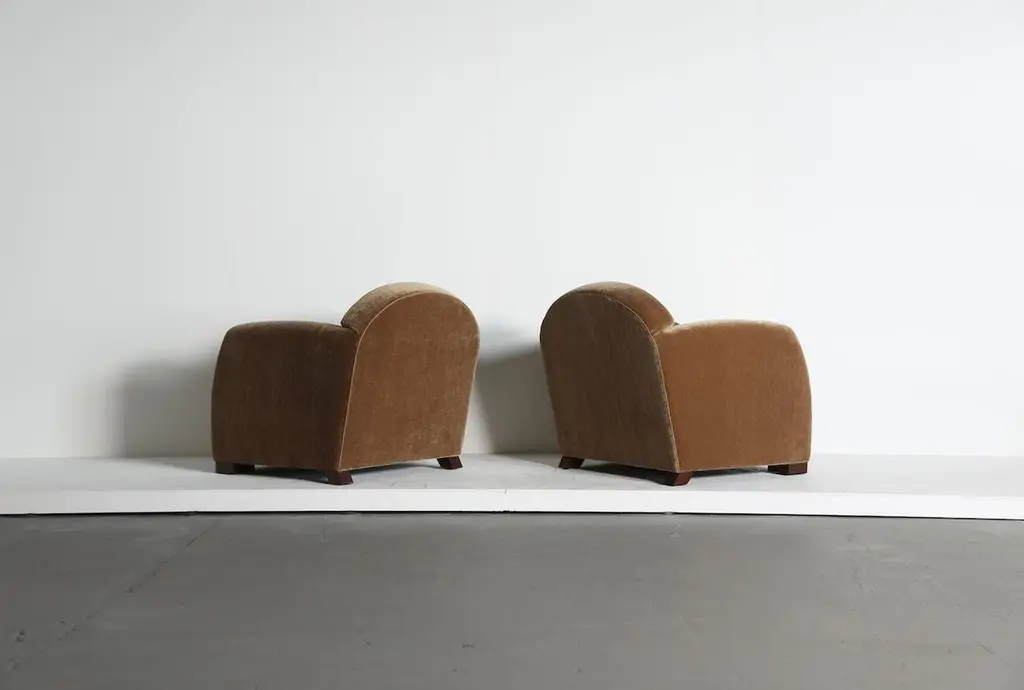 Pair Of Curved Arm Club Chairs, Upholstered In Pure Mohair
