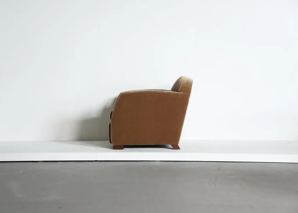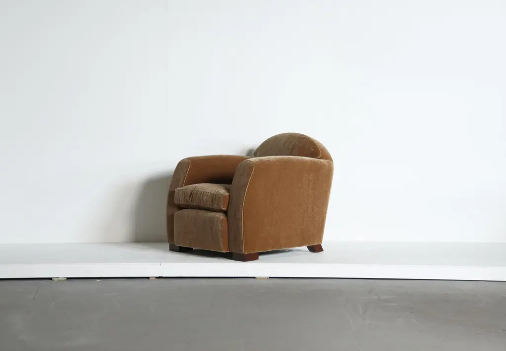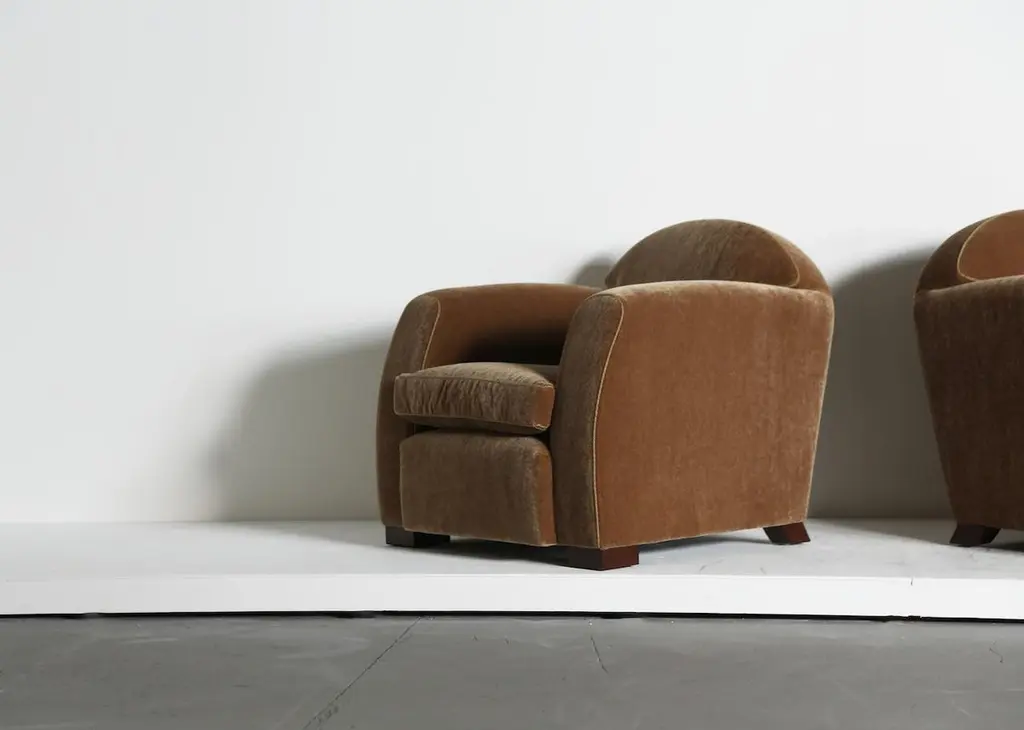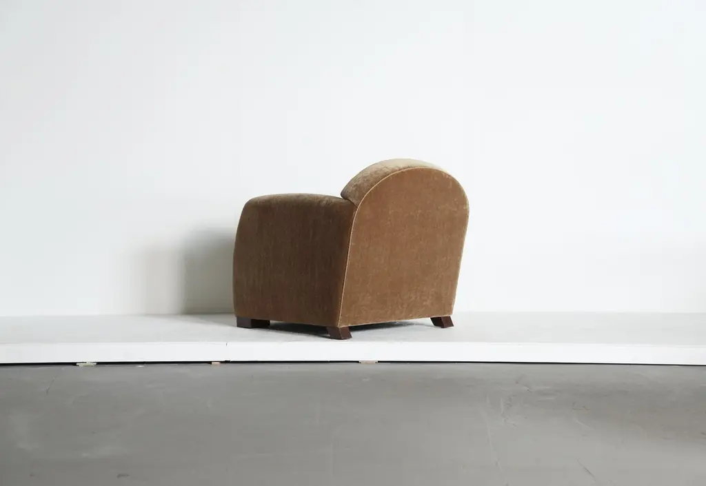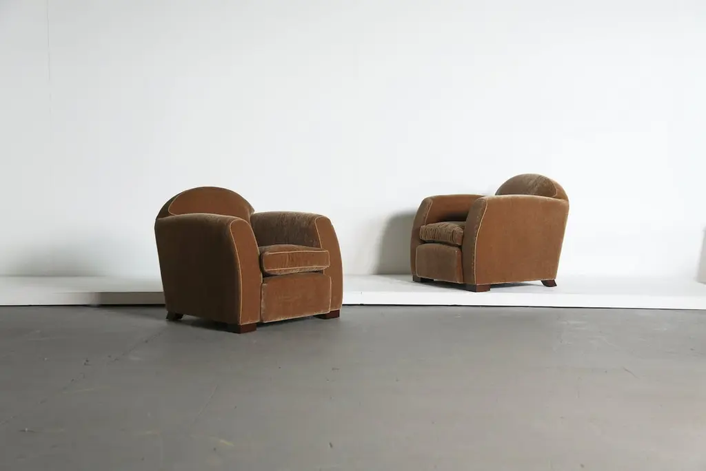 Pair Of Curved Arm Club Chairs, Upholstered In Pure Mohair