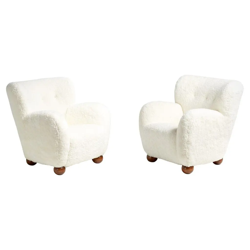 Pair Of Custom Made Sheepskin Lounge Chairs