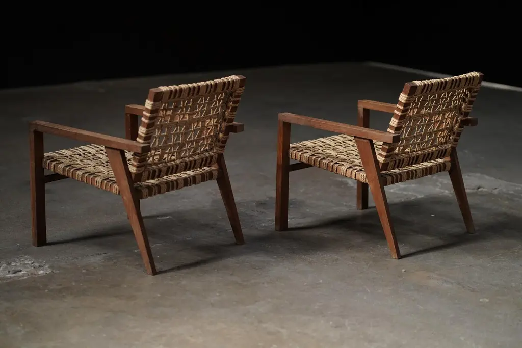 Pair of Woven Lounge Chairs from France, origin 1950's The natural woven texture offers warmth and character, while the elegant silhouette ensures both comfort and style. Perfect for creating a relaxed yet sophisticated atmosphere, these chairs are a statement of understated luxury.