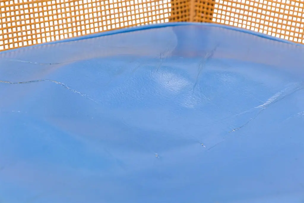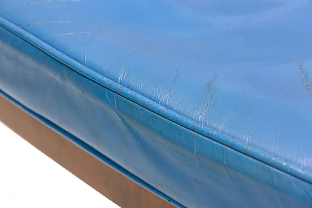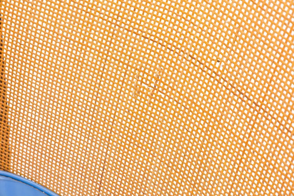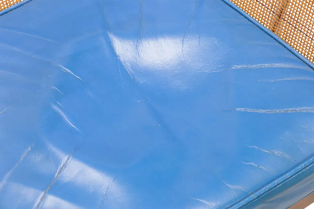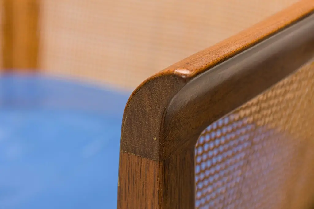 Pair Of Kipp Stewart For Directional Walnut, Cane, And Blue Leather Chairs