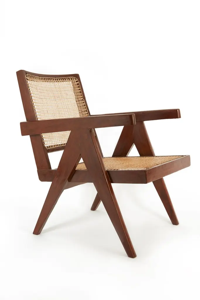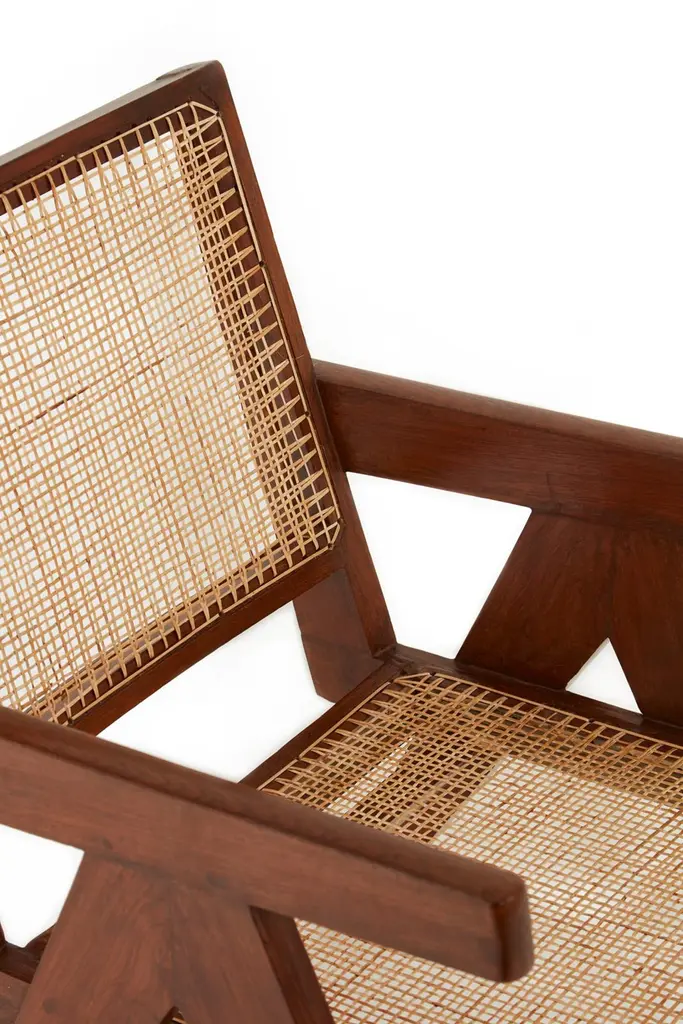Pair of Easy Chairs from the administrative offices of Chandigarh (PJ-SI-29-A). The pair comprises two closely matching chairs, minor incongruities on the dimensions are due to the handmade production. Recently restored and recaned in natural cane.