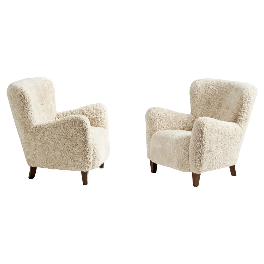 Introducing Wulff, a lounge chair whose upholstered form pays tribute to the hand-crafted designs of the 1930's. Wulff promises superior craftsmanship and outstanding comfort with luxuriantly soft upholstery that covers its seat and backrest. Intended as a lounge chair for the living room or bedroom, its architectural shape will add a stylish statement to any interior.DimensionsH: 85 cm / 34 in, W: 85 cm / 34 in, D: 84 cm / 33.6inSeat height: 41 cm /16.4 inArmrest height: 59cm / 23.2 inMaterial: Sheepskin 17mm, moonlight & oiled walnut.