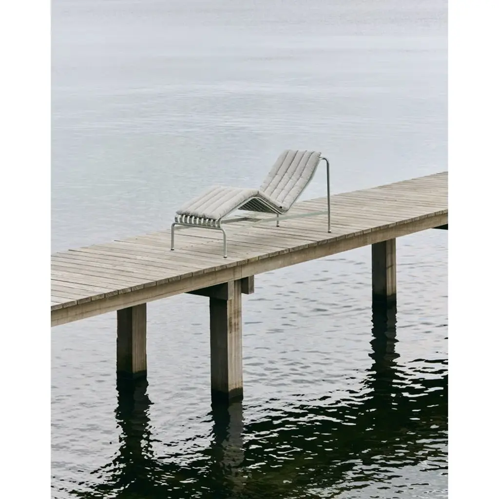 The sleek yet robust Palissade chaise longue is a member of HAY’s versatile outdoor furniture collection. The elegant lounger features a curved frame that creates the perfect setting for a relaxed stay. And if you're still dreaming of a little bit of extra comfort, you can get it with the Palissade cushions that are sold separately. Palissade outdoor furniture features a strong, graphic design that consists of simple steel tubes and slats. Ronan and Erwan Bouroullec worked with the collection for two years and created a range of simple, balanced pieces that are well suited for terraces, balconies, gardens, cafés and public spaces. The Palissade chairs, tables and benches are sturdy but elegant, and perfect for outdoor use since wind and water will pass through the galvanized steel frame. The Palissade furniture was designed to age well and its muted color palette adds to the timeless and versatile appearance.