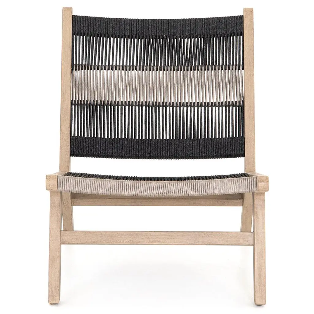 Exuding understated elegance, the low-profile design of the Palma outdoor lounge chair blends a solid teak frame with all-weather wicker. Touched by a sleek black finish, the durable frame cradles a seat and back woven from UV and weather-resistant faux hyacinth. Emanating natural beauty, this piece draws inspiration from tropical hyacinth and sea grass, cleverly designed to mimic nature while capturing the true essence of the originals.