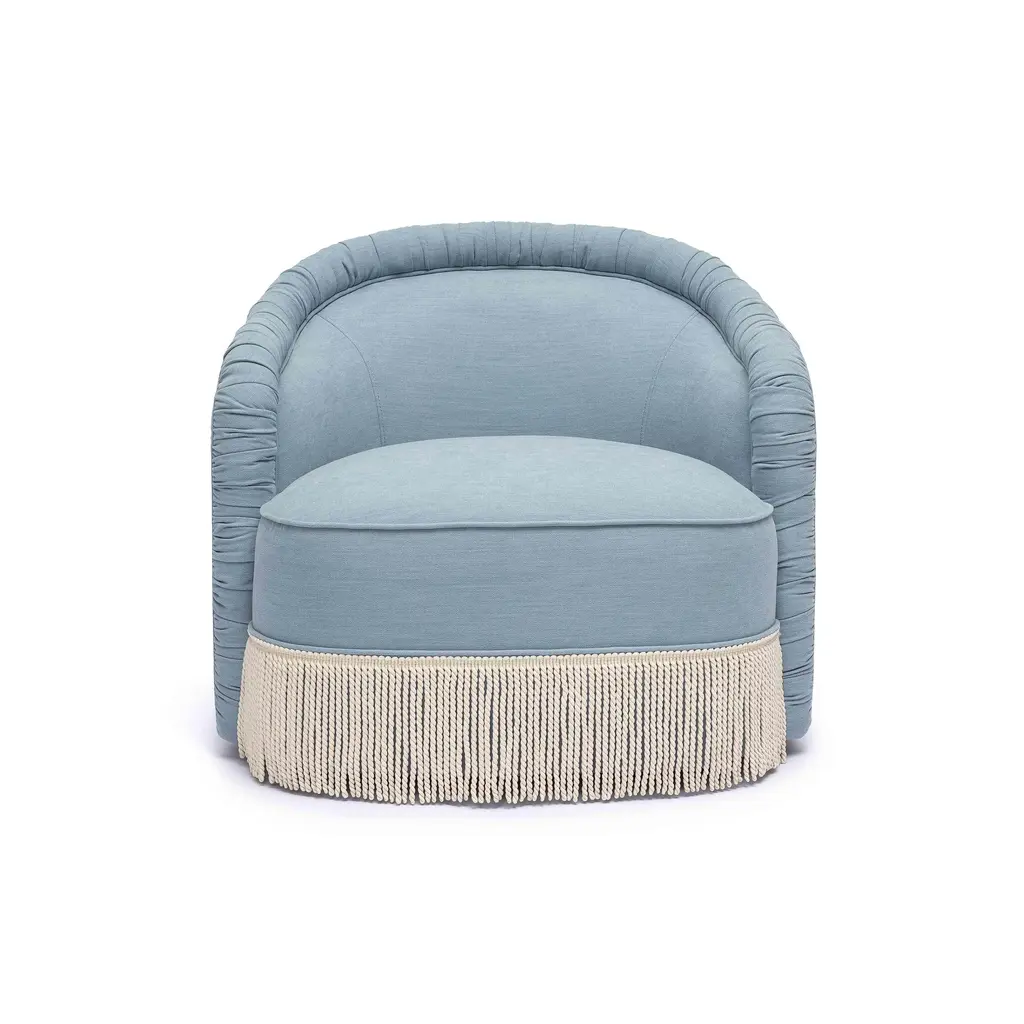 Pamela Faded Blue Upcycled Fabric Tassel Lounge Chair