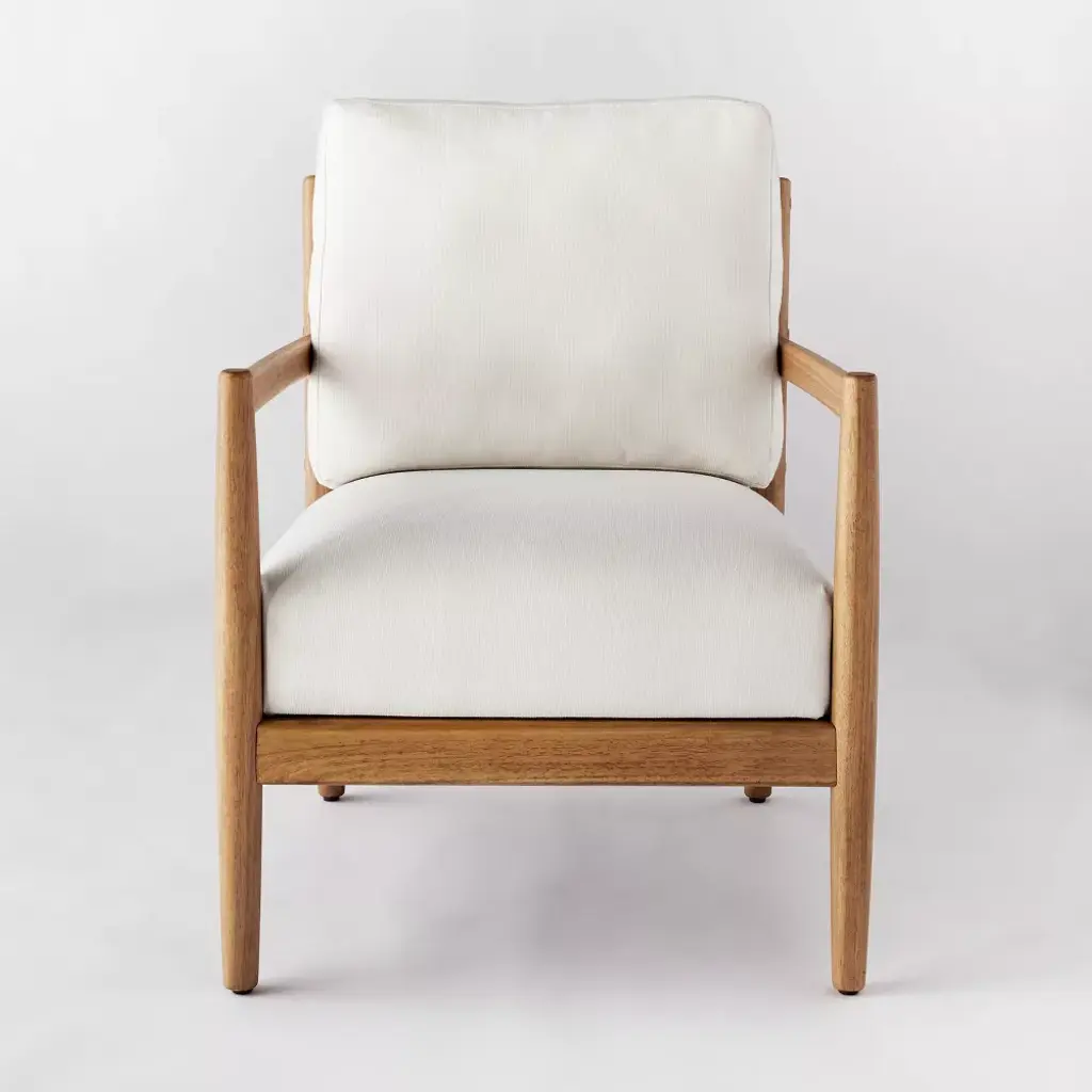 Whether you're looking to round out a living room seating arrangement or add some interest to an empty corner, the Ladder Back Wood Arm Accent Chair from Threshold™ designed with Studio McGee will make a great addition to your space. This wooden accent chair has a simple yet striking look that's easy to incorporate into your decor, with a low-set, light-wood frame and thick cushions. A ladder back adds some extra dimension to the piece, while knit detailing on the cushions balance out the sleekness of the wood with a nice touch of texture. Plus, the chair can coordinate with both bright colors and other neutrals to perfectly coordinate with your existing decor. Just add on some throw pillows to personalize the aesthetic. Meet Shea McGee, the designer and stylist behind the brand Studio McGee. Founded alongside her husband, Syd, the studio is known for Shea’s design of beautifully elevated spaces that encourage clients to surround themselves with the things and people they love. Now she’s partnering with Threshold to offer Studio McGee’s classic design in a new collection for inspired homes, everywhere.