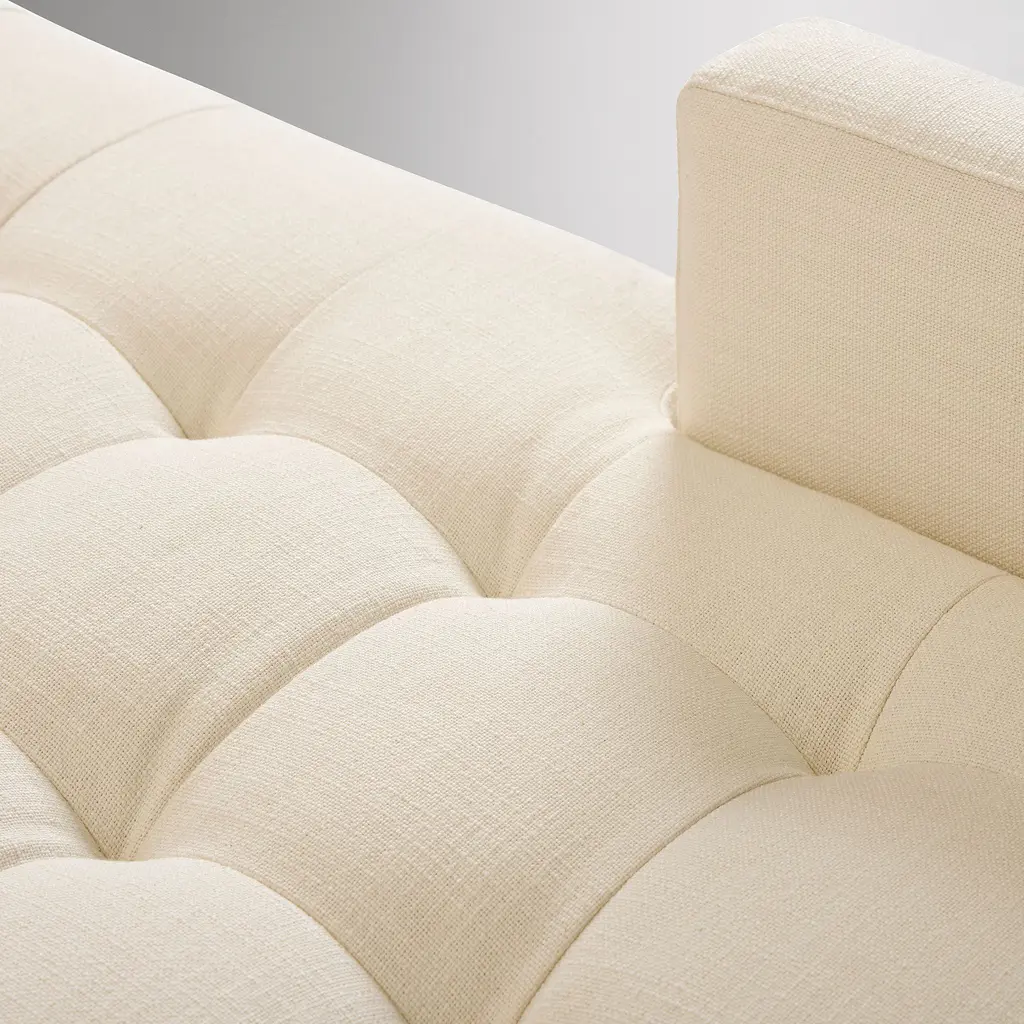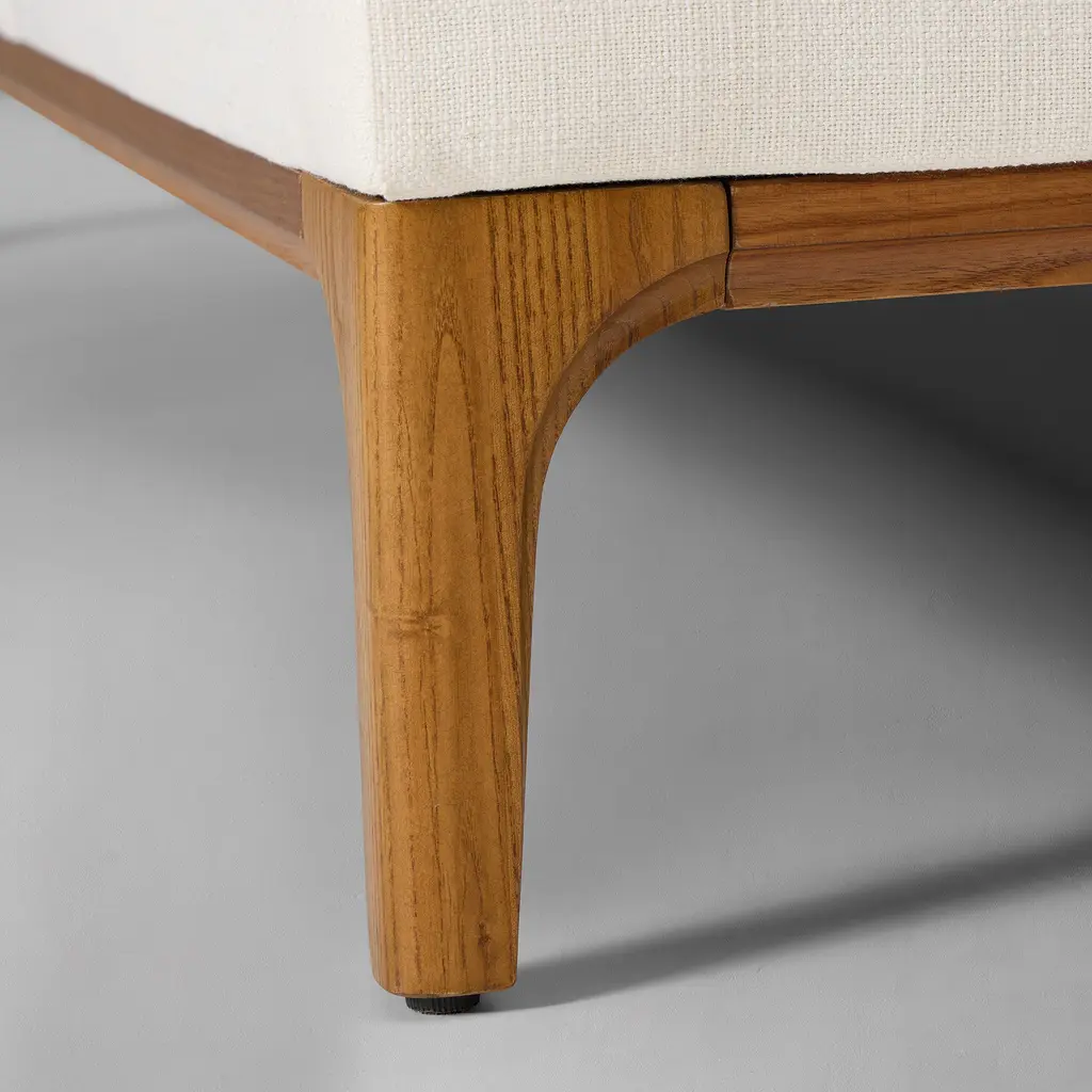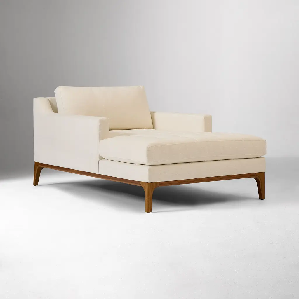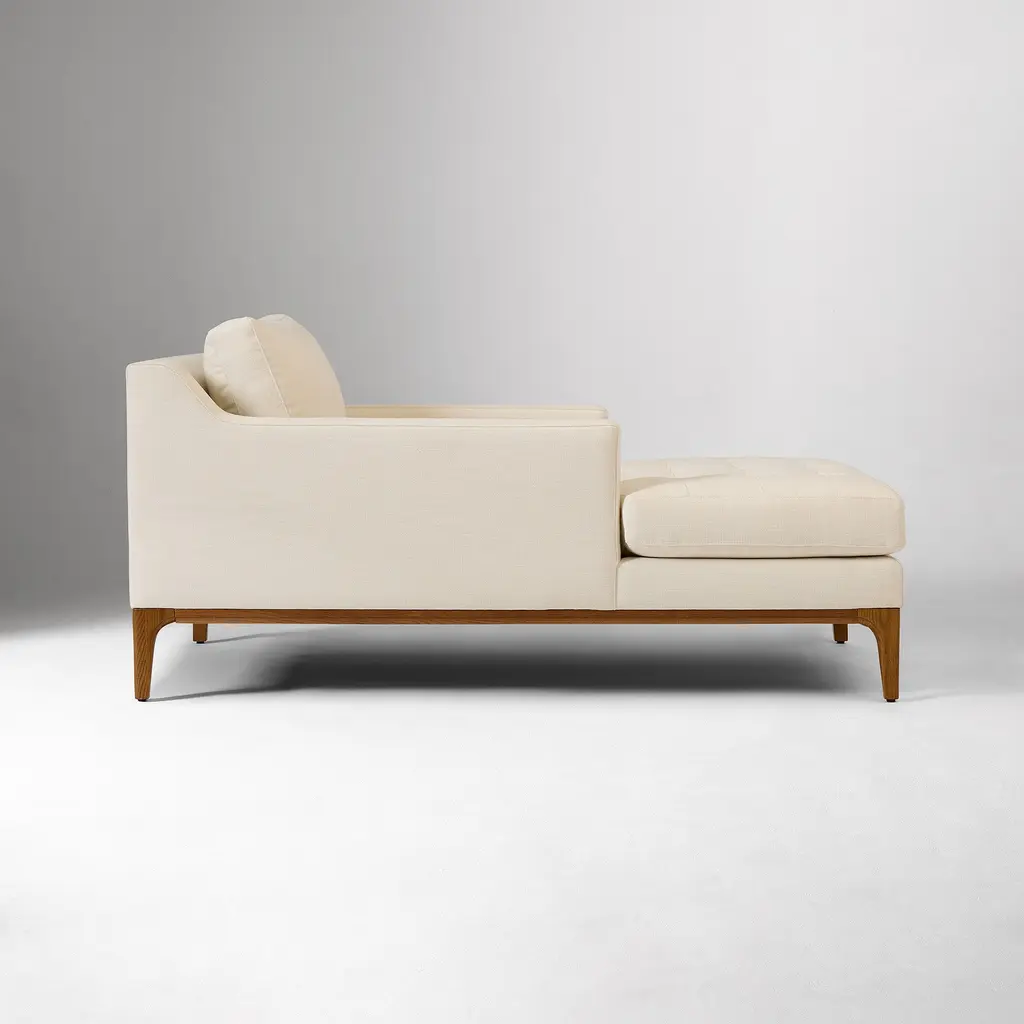 The grand-scale frame and sloped track arms. Streamlined cushion sits on a polished wood base. A cozy way to add extra seating for lounging or guests spending the night. Hand-built frames with hand-finished upholstery. Contract Grade, so you know it’s built to last.