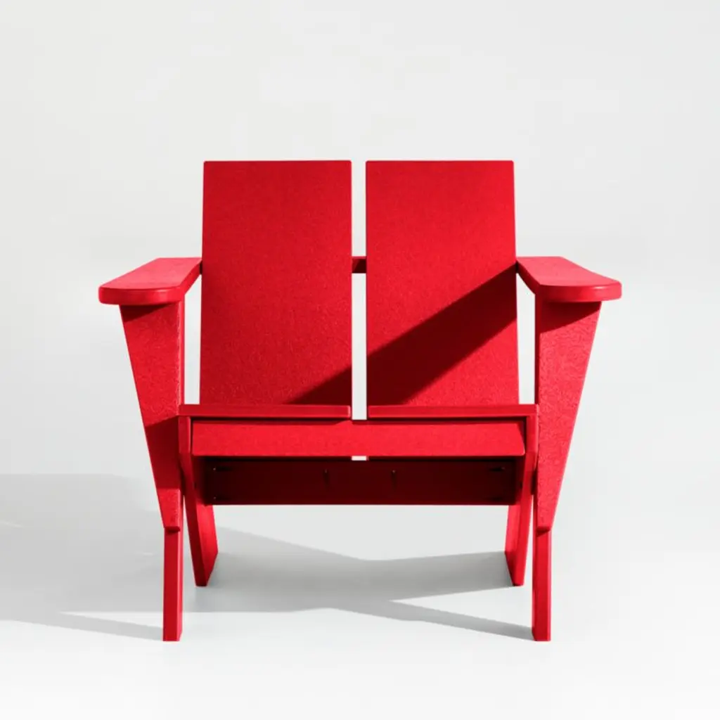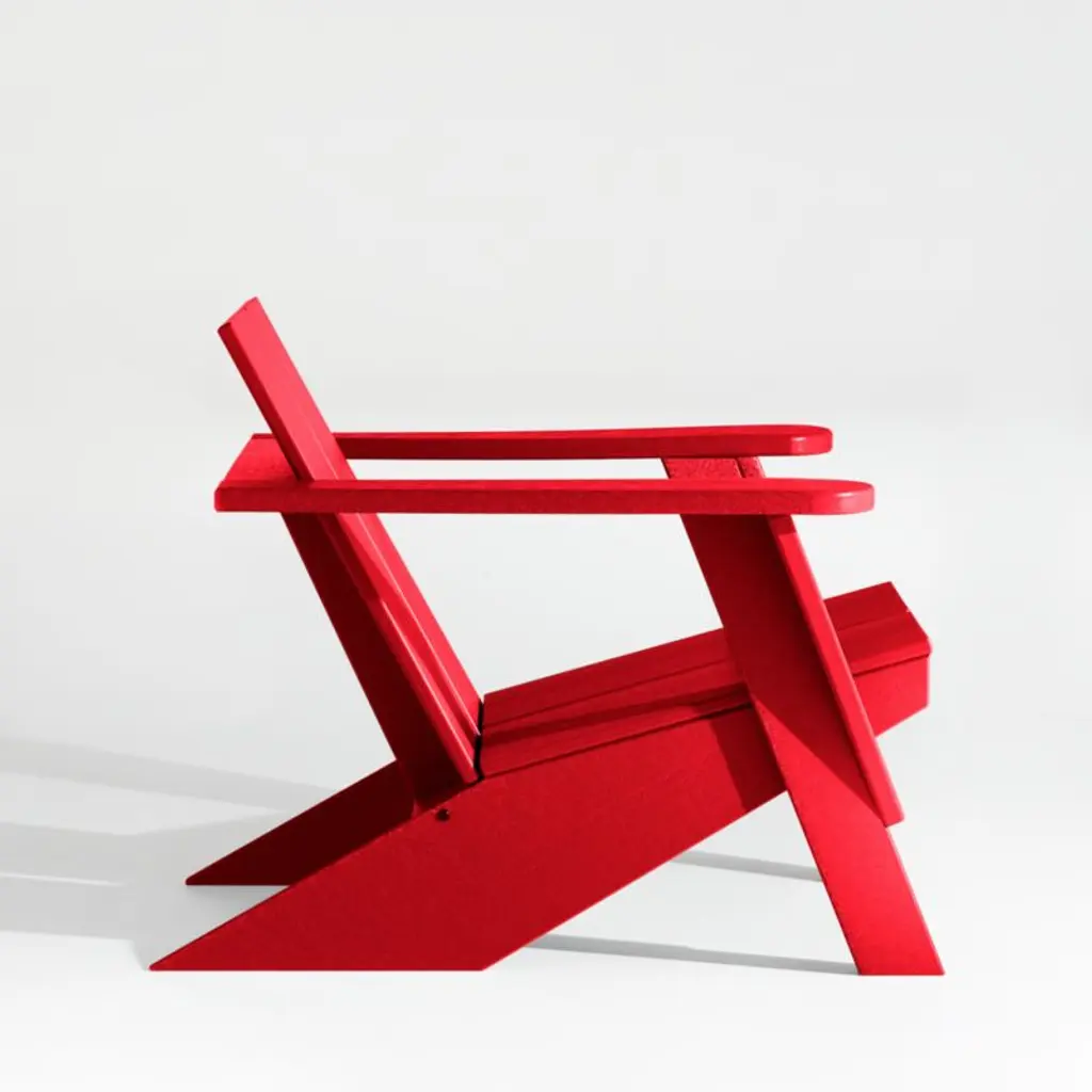 Kick back all summer (and beyond) in Paso. Our modern Adirondack chair with a squared-off back is crafted of super-durable POLYWOOD®a proprietary blend of plastics that's weather- and UV-resistant. Bold and sculptural with exaggerated angles and wide planks, Paso's exclusive design is punctuated with broad armrests and flange-accented front legs. Pair the bright red chair with the coordinating ottoman for the ultimate in outdoor lounging.