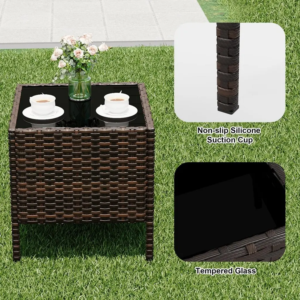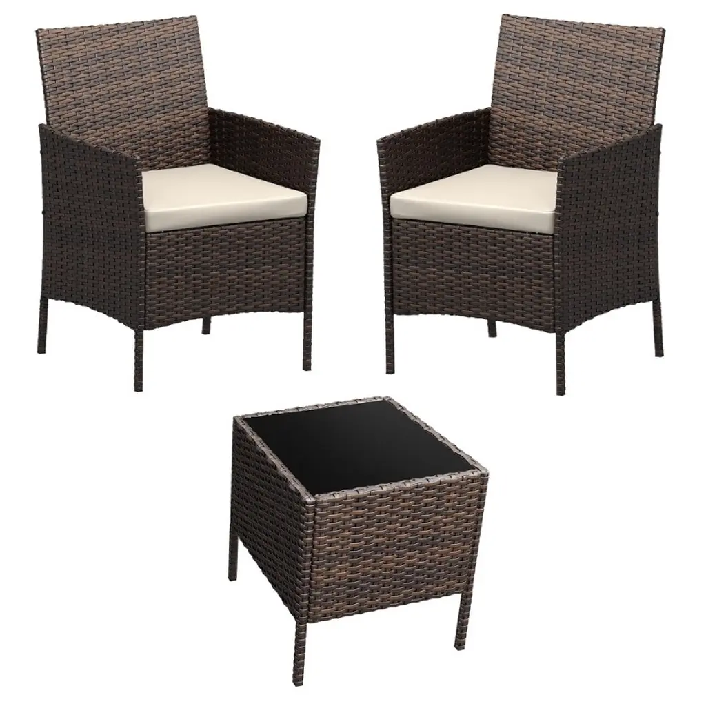 Upgrade your outdoor space with this stylish 3-piece patio set, featuring two cushioned chairs and a sturdy coffee table. Crafted from durable, all-weather PE rattan wicker with a sleek Brown finish, this versatile bistro set is perfect for small balconies, cozy porches, or backyard gatherings. The plush cushions and powder-coated steel frame ensure lasting comfort and weather resistance season after season.