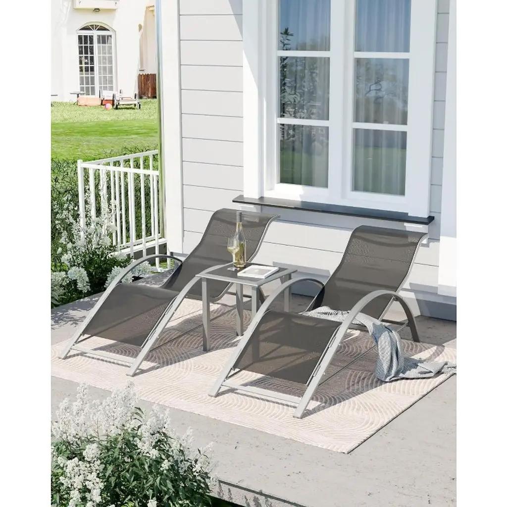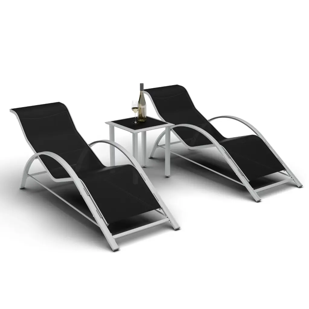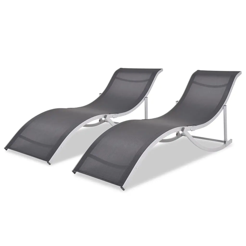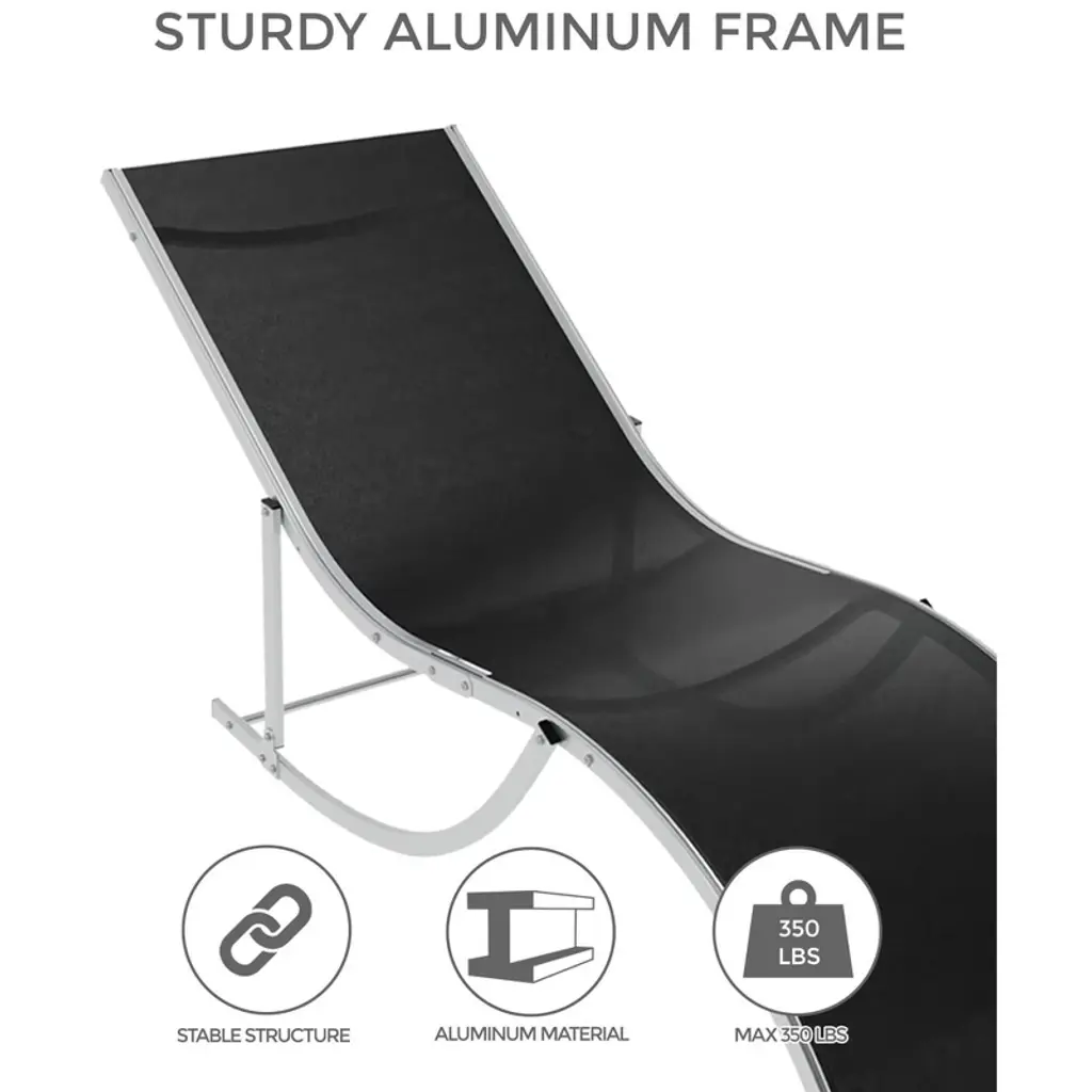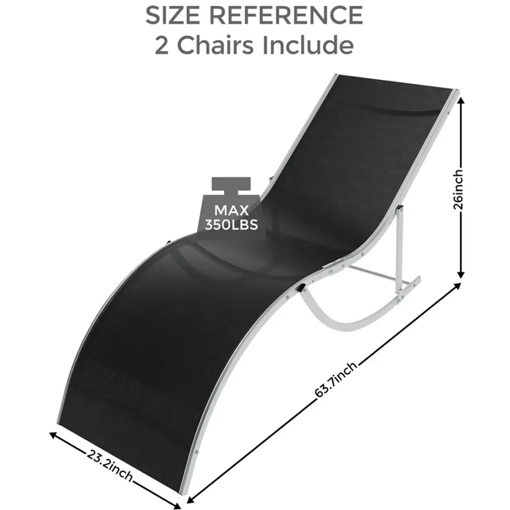 Patio Lounge Chairs Set Of 2 - S-shaped Ergonomic Design, Textilene Fabric, Aluminum Chaise Lounge For Pool, Beach, Garden, Black