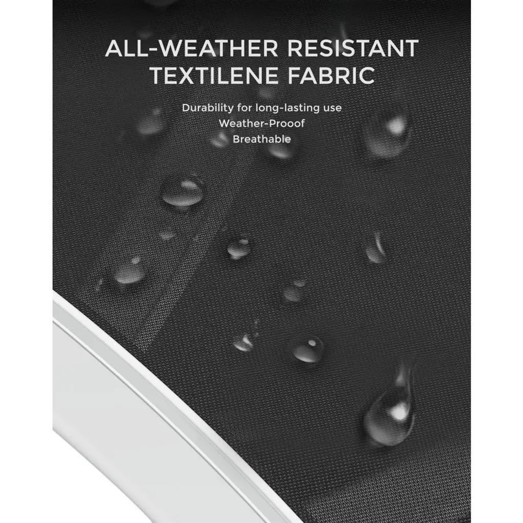Hexagonal elastic mesh mimics natural structures, improving pressure distribution by 60%.Three-zone suspension support adapts to body shapes, reducing neck strain by 47%.Supports 353 lbs :Constructed with rust proofs, reinforced Aluminum that ensures exceptional stability even on uneven ground without bending, our durable frame offers all-weather performance that reliably stands up to intense sun, heavy rain, and frequent use throughout every season.Stain-resistant surface wipes clean easily—just rinse with water, no special maintenance needed, and no fading over time.