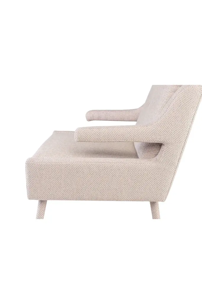 The Balham Lounge Armchair by Versmissen embodies contemporary elegance with its sleek design. Upholstered in a sophisticated beige fabric with subtle diamond patterns and accented by two tufted buttons, this cozy seating solution exudes timeless charm. It seamlessly integrates into any home's interior, adding a touch of refinement and comfort. Whether placed in a reading nook or as a statement piece in a living room, its modern allure elevates the ambiance, inviting relaxation and style into the space.