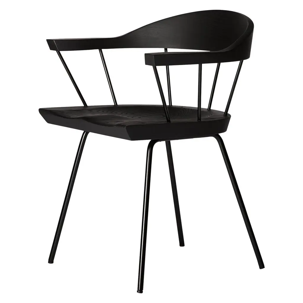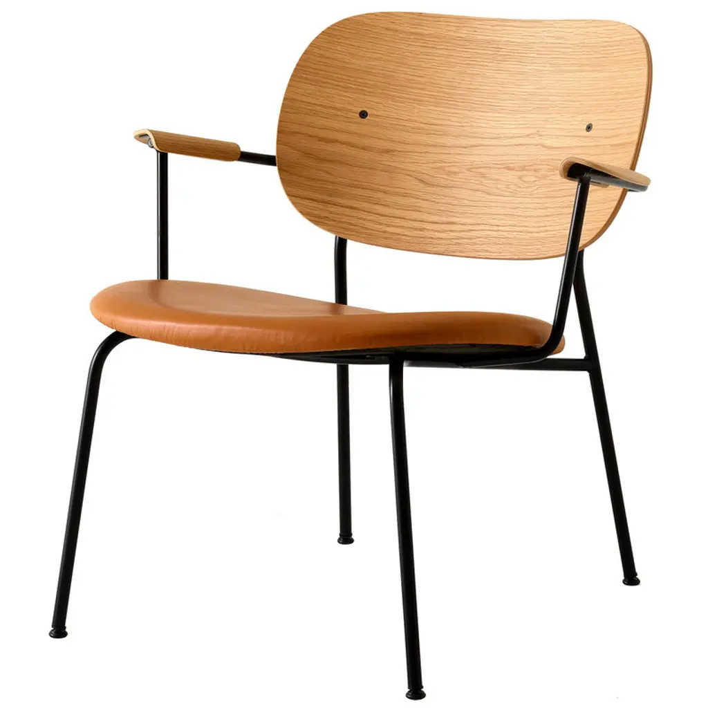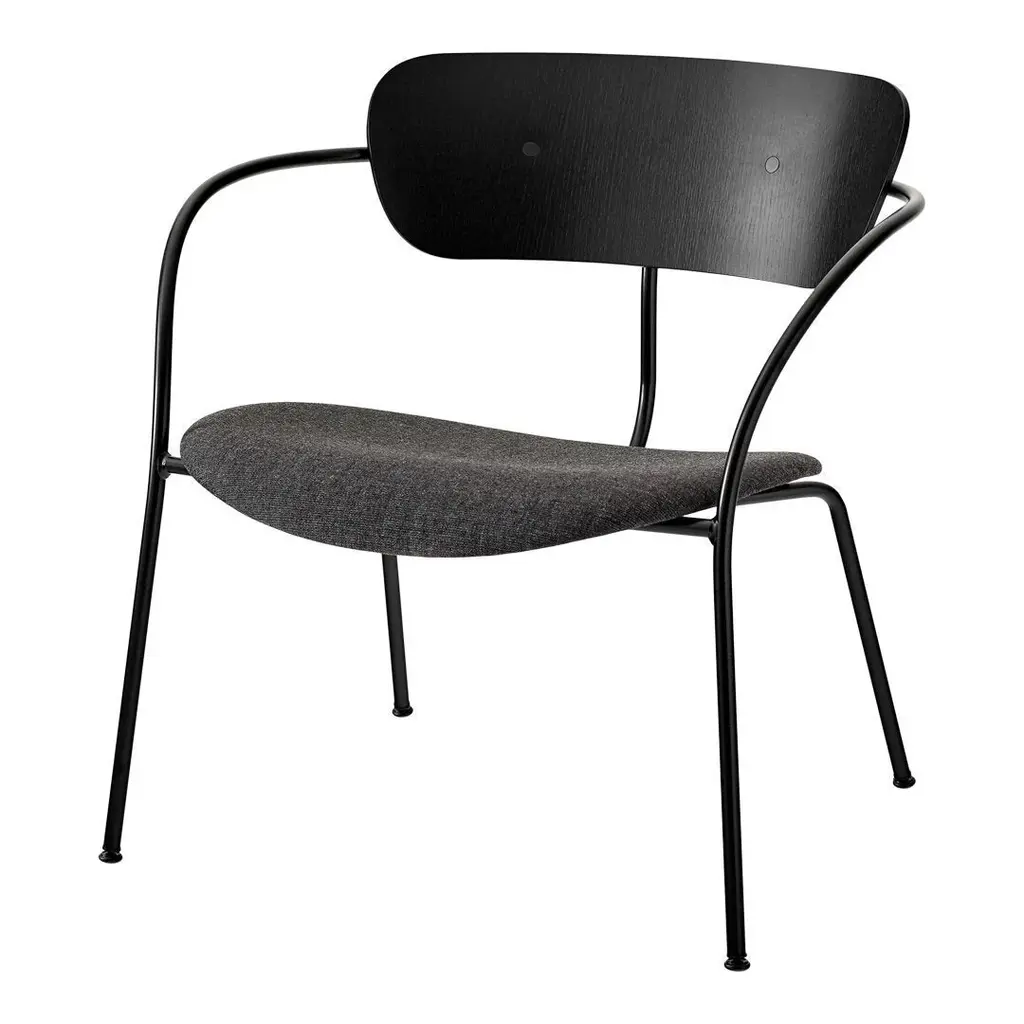 At first glance, the Pavilion lounge chair appears almost like a rope that's come undone. From the curvaceous wood veneer seat and back to the steel tubes that form the armrests and legs, it's a continuous flow of lyrical lines. A stackable chair that's airy from any angle, it's designed to be slightly laid back and with a wider seat than its cousin the Pavilion chair. In doing so, the Pavilion lounge chair is an open invitation to lean back, relax and stay a while. Black fittings are installed as a standard on the front of the backrest. Brass fittings are available upon request.