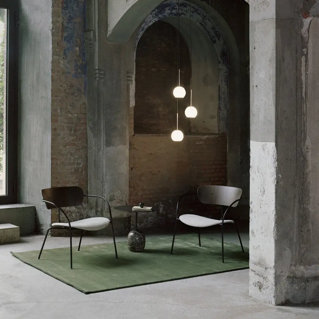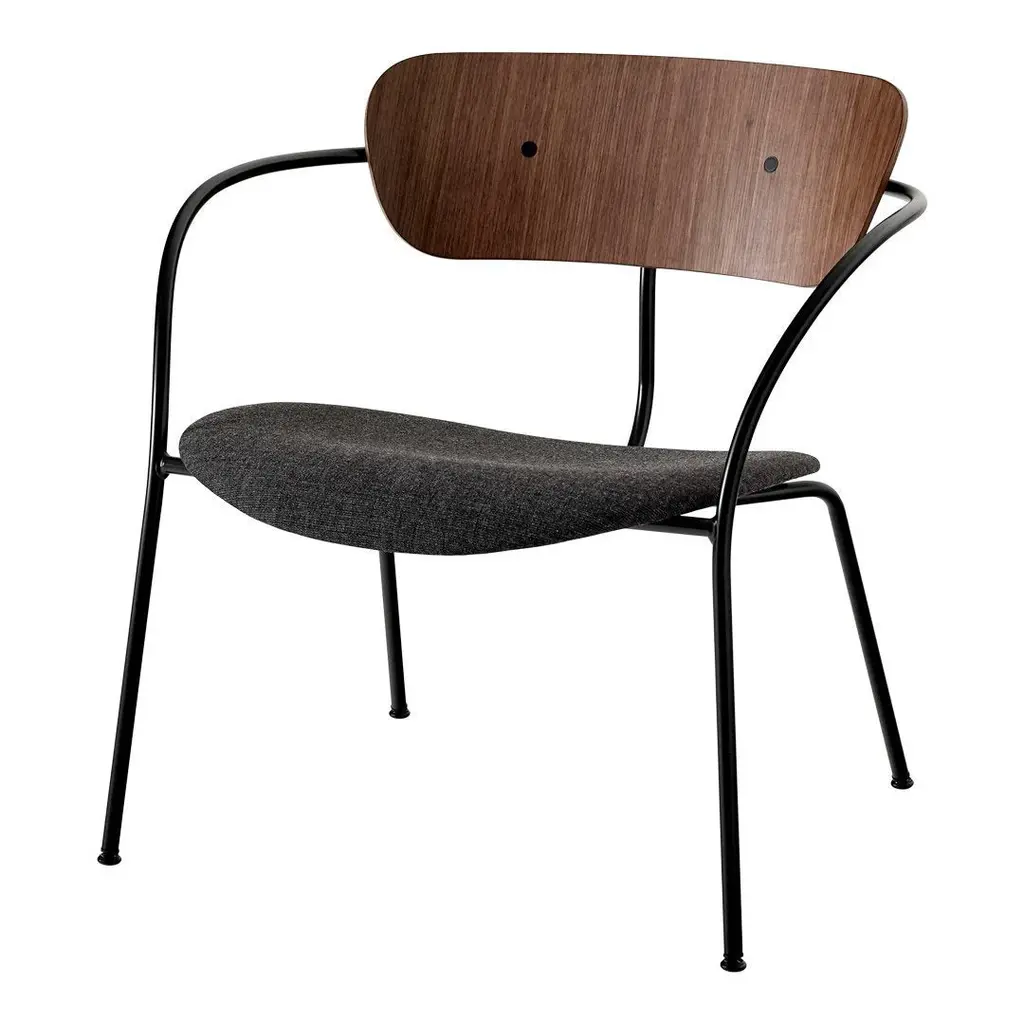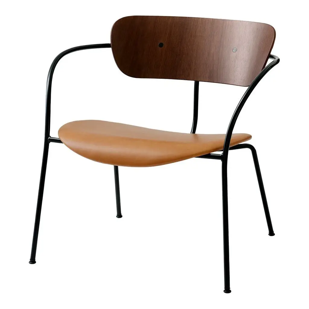 At first glance, the Pavilion lounge chair appears almost like a rope that's come undone. From the curvaceous wood veneer seat and back to the steel tubes that form the armrests and legs, it's a continuous flow of lyrical lines. A stackable chair that's airy from any angle, it's designed to be slightly laid back and with a wider seat than its cousin the Pavilion chair. In doing so, the Pavilion lounge chair is an open invitation to lean back, relax and stay a while. Black fittings are installed as a standard on the front of the backrest. Brass fittings are available upon request.