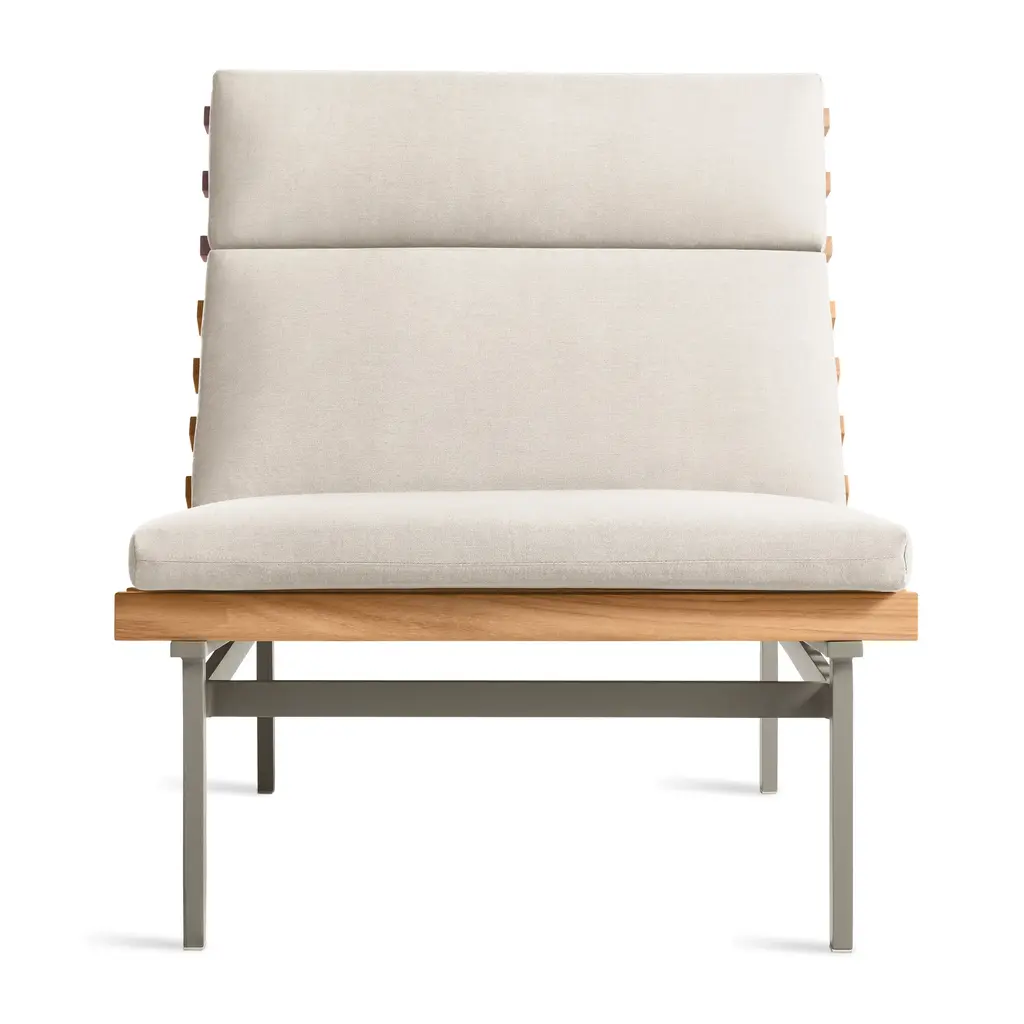 Luxury design meets relaxation with the Perch Outdoor Lounge Chair from Blu Dot. Crafted with rectangular teak slats and a sleek matte white aluminum frame, this chair exudes style and comfort. With cushions wrapped in Sunbrella fabric, this cozy lounge chair is ready to stand up to the elements while providing the perfect spot for a staycation in the sun. Highlights