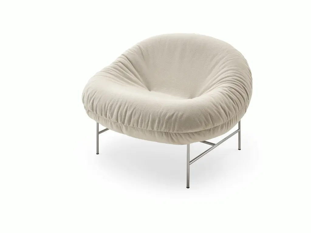 The Perron Bun Lounge Chair, with its cloud-like cushion supported by a sculptural frame, is an informal and dynamic solution for relaxation. It’s available in a choice of inviting fabrics.Designer and creative director Willo Perron erases the distinctions between lounge chair, sofa, and bed with his Perron Bun Lounge Chair for Knoll. The roomy, plush seat welcomes a variety of curling up and tucking in positions, while the graceful curves of the sling base further the sitter’s relaxed, comfortable repose. It’s an inviting and laid-back nest.