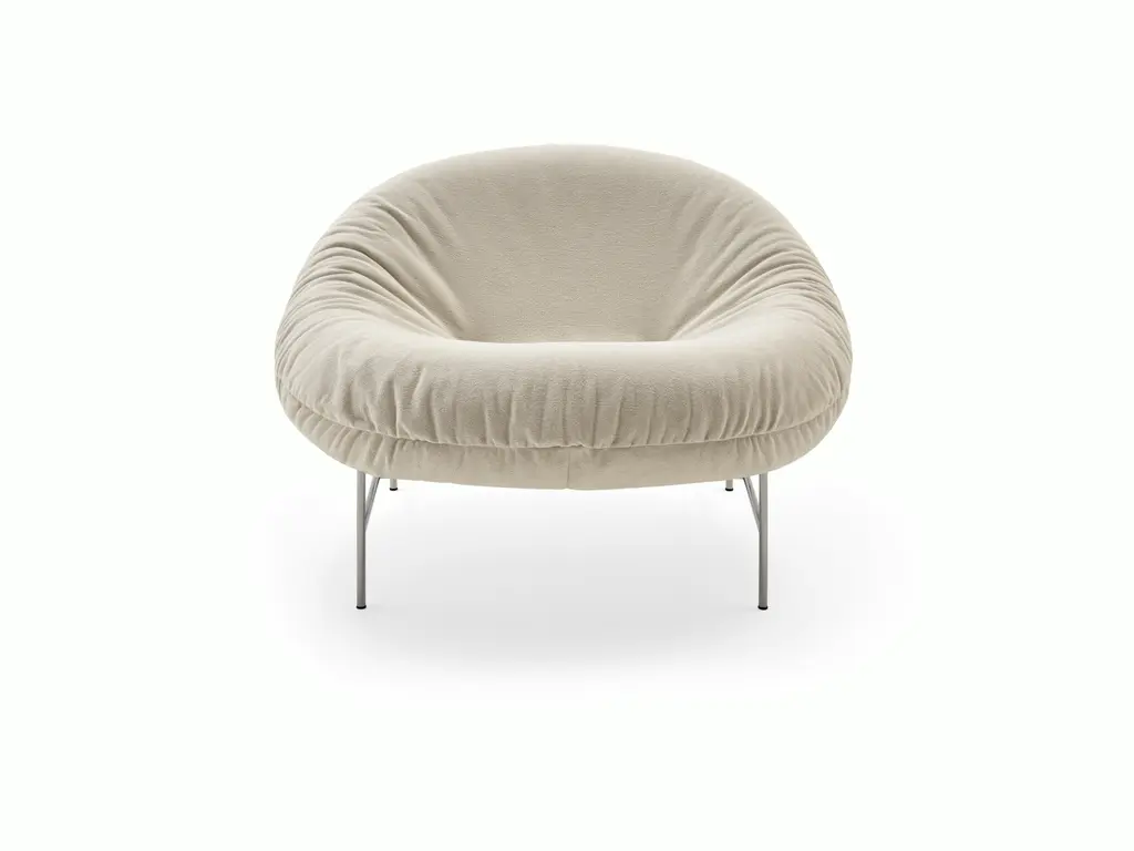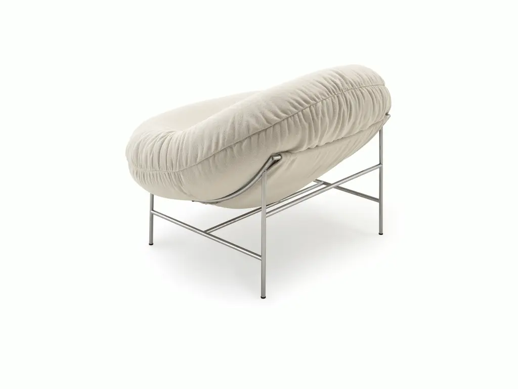 The Perron Bun Lounge Chair, with its cloud-like cushion supported by a sculptural frame, is an informal and dynamic solution for relaxation. It’s available in a choice of inviting fabrics.Designer and creative director Willo Perron erases the distinctions between lounge chair, sofa, and bed with his Perron Bun Lounge Chair for Knoll. The roomy, plush seat welcomes a variety of curling up and tucking in positions, while the graceful curves of the sling base further the sitter’s relaxed, comfortable repose. It’s an inviting and laid-back nest.
