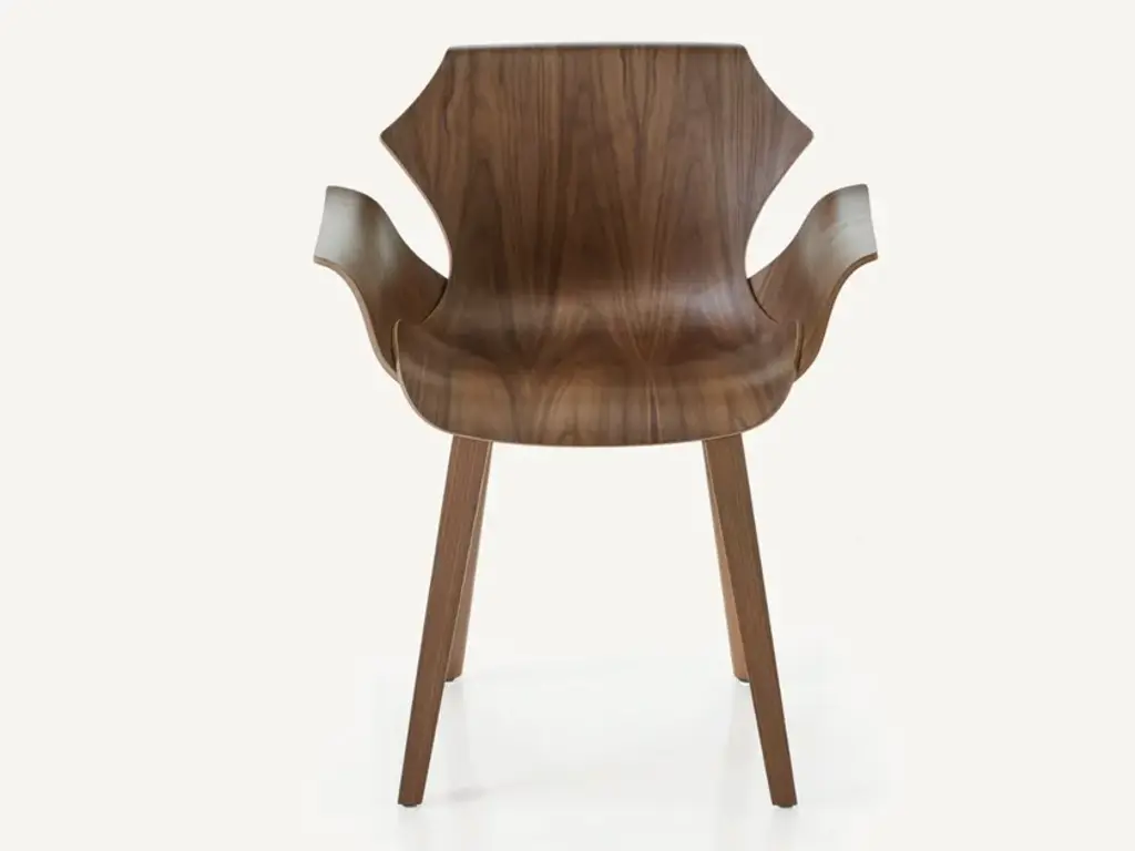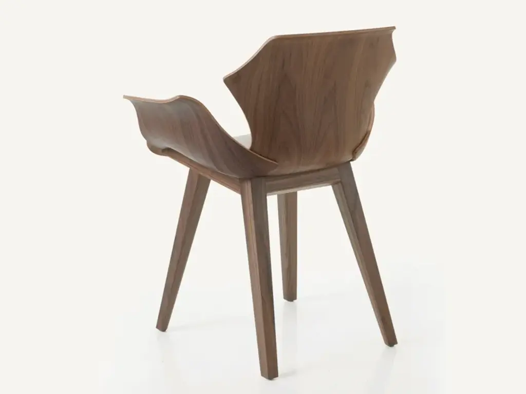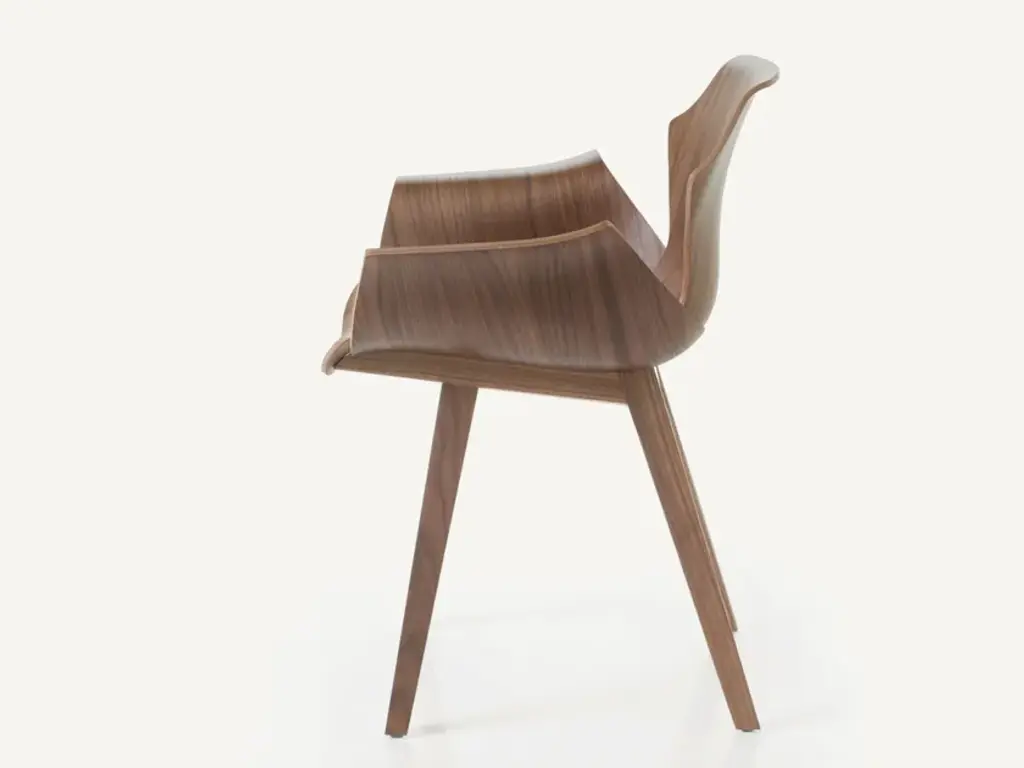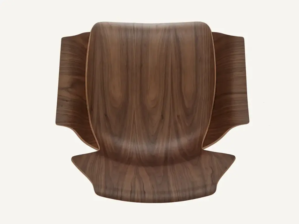 The Petal Armchair is an all wood chair consisting of a 3D molded wood veneer shell with a carved, solid wood base. Materials: Shell in 3D White Oak or Walnut veneer. Base in carved solid White Oak or Walnut.The BassamFellows Petal chair is the most advanced 3D molded wood veneer chair ever put into commercial production. It takes some of its inspiration from Saarinen’s Tulip chair, and also offers a dialogue with the history of the Eames experiments. The Petal chair is state of the art and environmentally friendly, but the industrial nature of the process behind it, and its economic use of materials, makes for a democratic price point. It sits neatly alongside other bent plywood chairs in terms of function and aesthetic, but has a notably more expressive form. The super-shaped wood mimics the unfolding of flower petals, creating a comfortable ergonomic form. The back is wider at its top to provide support, while rolled waterfalls of shaped wood soften the edges. Nature frequently offers the perfect mood board for comfort in design. Petal’s appeal is accentuated by the visual grain of the wood, which resembles the fine detail on a flower – the lines emanating outwards in the direction of a bloom. It’s fitting that the Petal shell is pressed at Davidson Plyforms in Grand Rapids, MI in the USA –the same company that has been pressing the Eames’ molded plywood chairs for decades. It draws a line back to the 1940s, but also represents a significant development for 21st century design. 20 years ago, CNC carving was in its infancy. The ergonomic and organic BassamFellows Tractor stool – which debuted in Milan in 2003 – was only made possible through use of that technology. Today, it is standard. The Petal is similarly ergonomic and organic-looking, but pushes the boundaries of what’s possible with molding: despite advances in 3D tech, the curvature of the rump of the shell, the waterfall edges and the shape of the arms are all extraordinarily difficult to achieve. But as the Eames’ experiments in the 1940s, technology exists to be developed more than it does to curb ambition. It is constantly being shaped.
