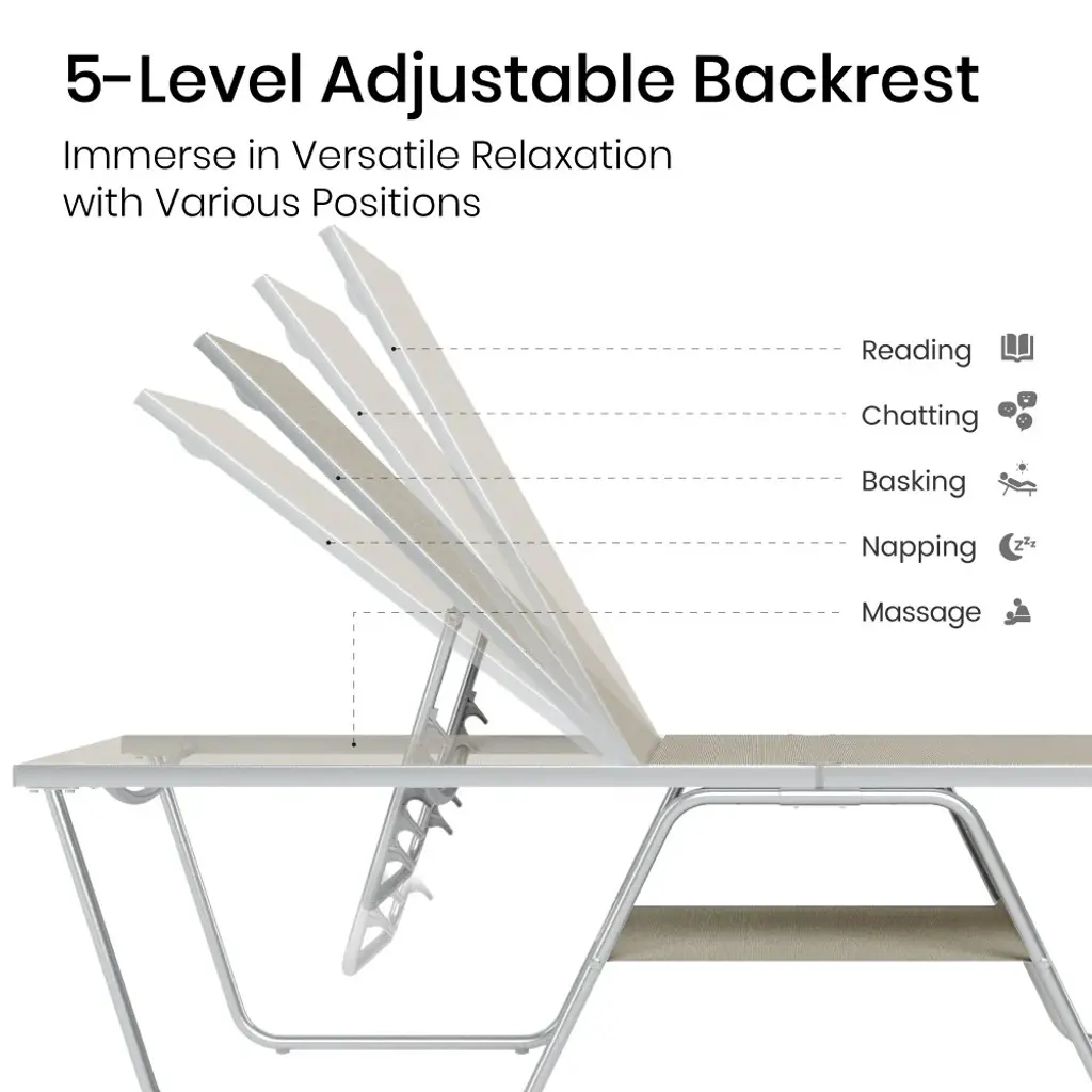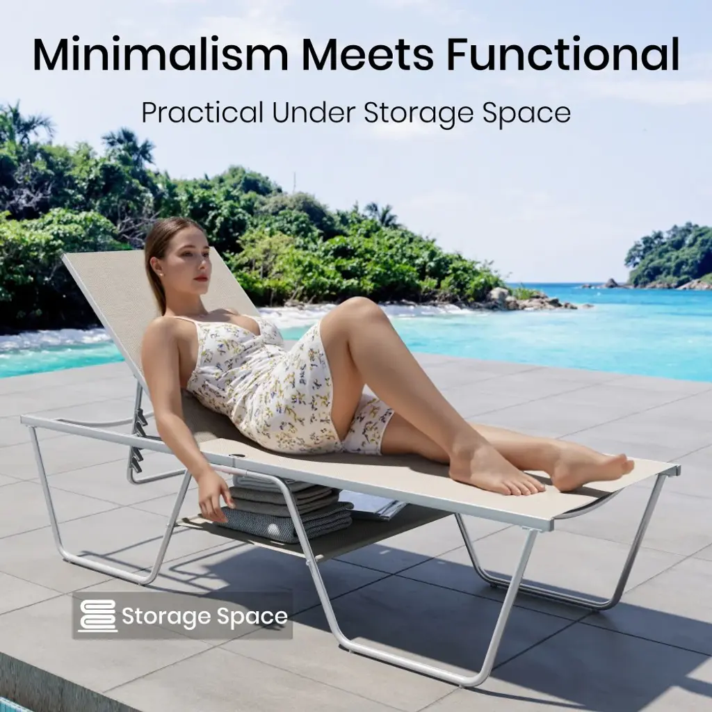 Enjoy ultimate outdoor relaxation with this Extra Large Chaise Lounge Chair. Designed with a sleek, minimalist frame that fits seamlessly into any patio, poolside, or garden space, it also allows for practical under-chair storage—keeping your outdoor area tidy and organized.