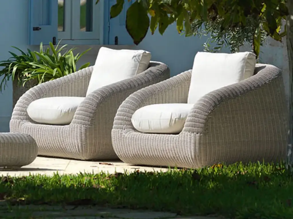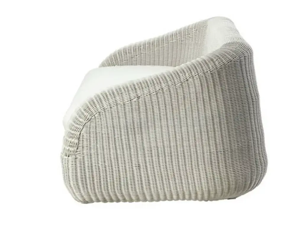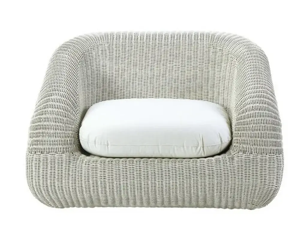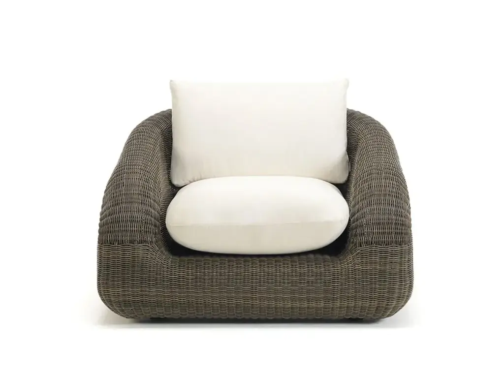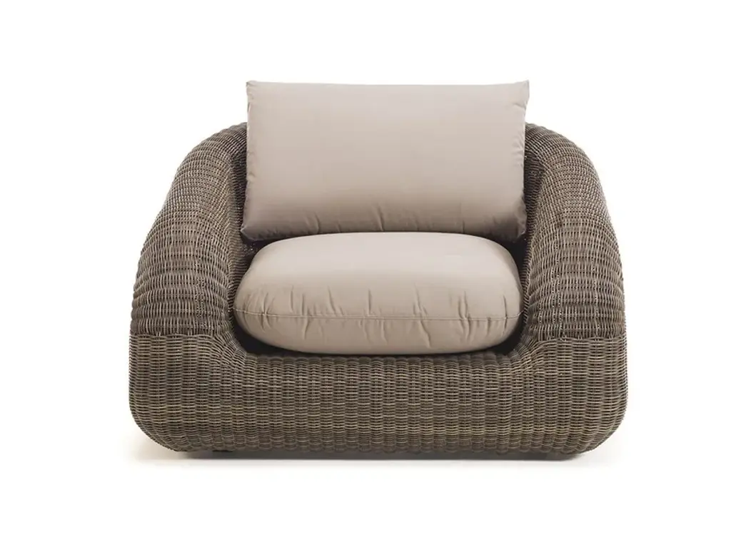 Phorma is an armchair in Etwick fibre including seat cushion (choice of fabric colour).The Phorma Line plays with volume and colour, blended harmoniously to give a refined, welcoming lounge that hints at a warm relaxing mood. Phorma is made in EtWick fibre, featuring a weave with a natural-looking rough finish. Tactile, synthetic and recyclable, EtWick fibre, available in the colours bark and white, is the perfect solution for those wanting a fusion of comfort and contemporaneity.