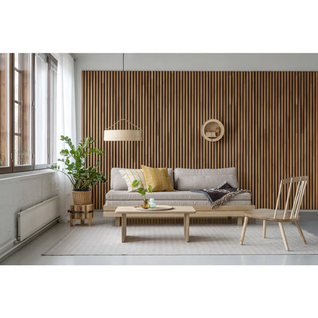 Tapio Anttila Collection's Piena easy chair interprets the classic spindle-back chair in a recognizable but distinctive way. The Piena chair is characterized by a clean and simple appearance with an eye-catching upper edge: instead of a wooden backrest, the spindles of the Piena chair are connected to each other with a leather strap. The end result is a comfortable, slightly flexible seat with an airy, natural look. The Piena easy chair is crafted from solid birch, and the support strap is made from recycled leather. Thanks to its slim but sturdy structure, the Piena chair is ideal for even compact living rooms.