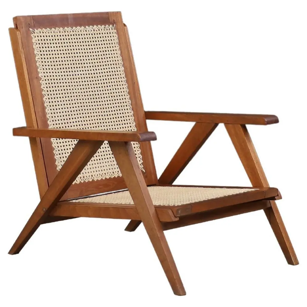 Iconic easy chair by Pierre Jeanneret from the administrative offices of Chandigarh, India.Restored and recaned in natural cane.