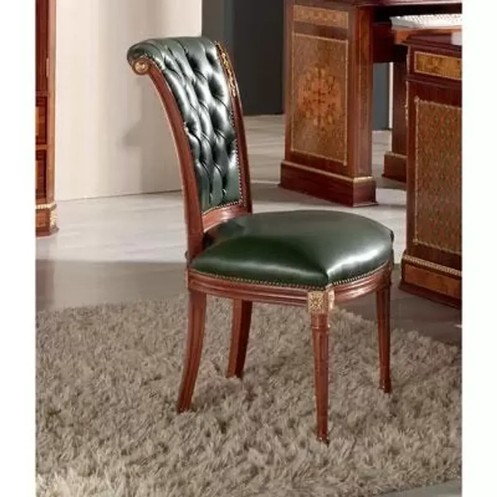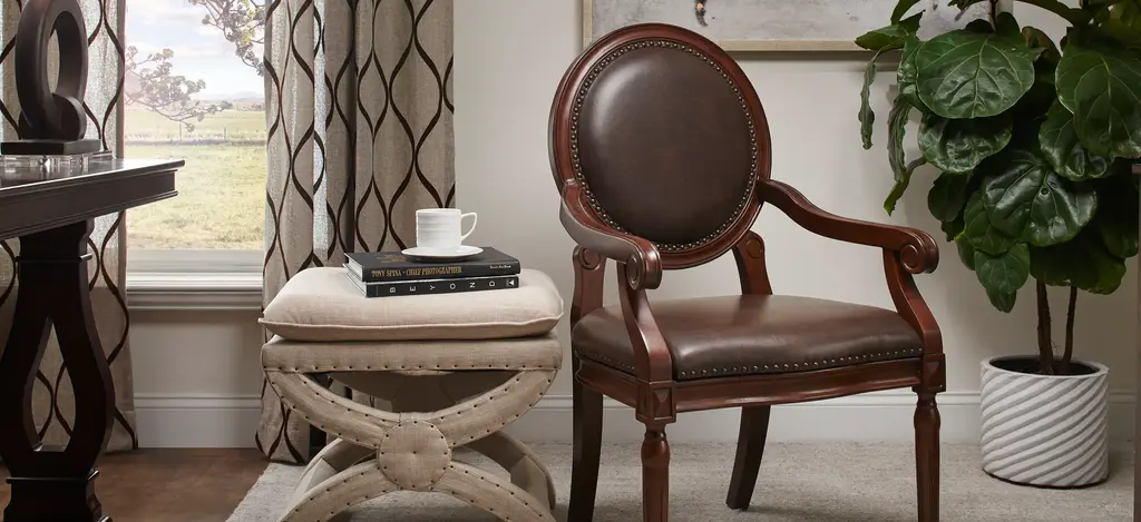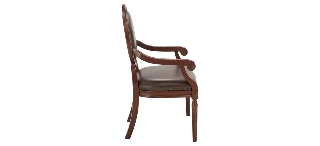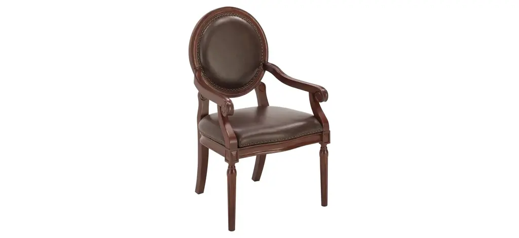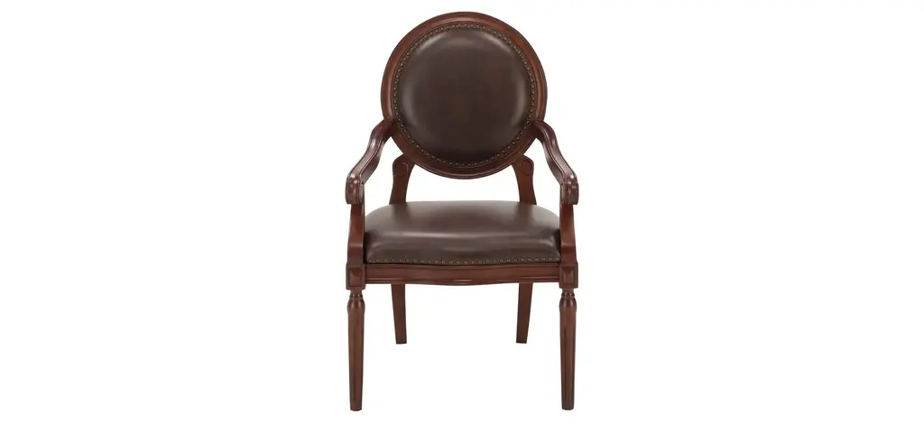 To add a stately, classic look to any room, consider the Pierson accent chair. With beautiful woodworking, nail head trim and leather-look upholstery, what isn't to love about this chair?