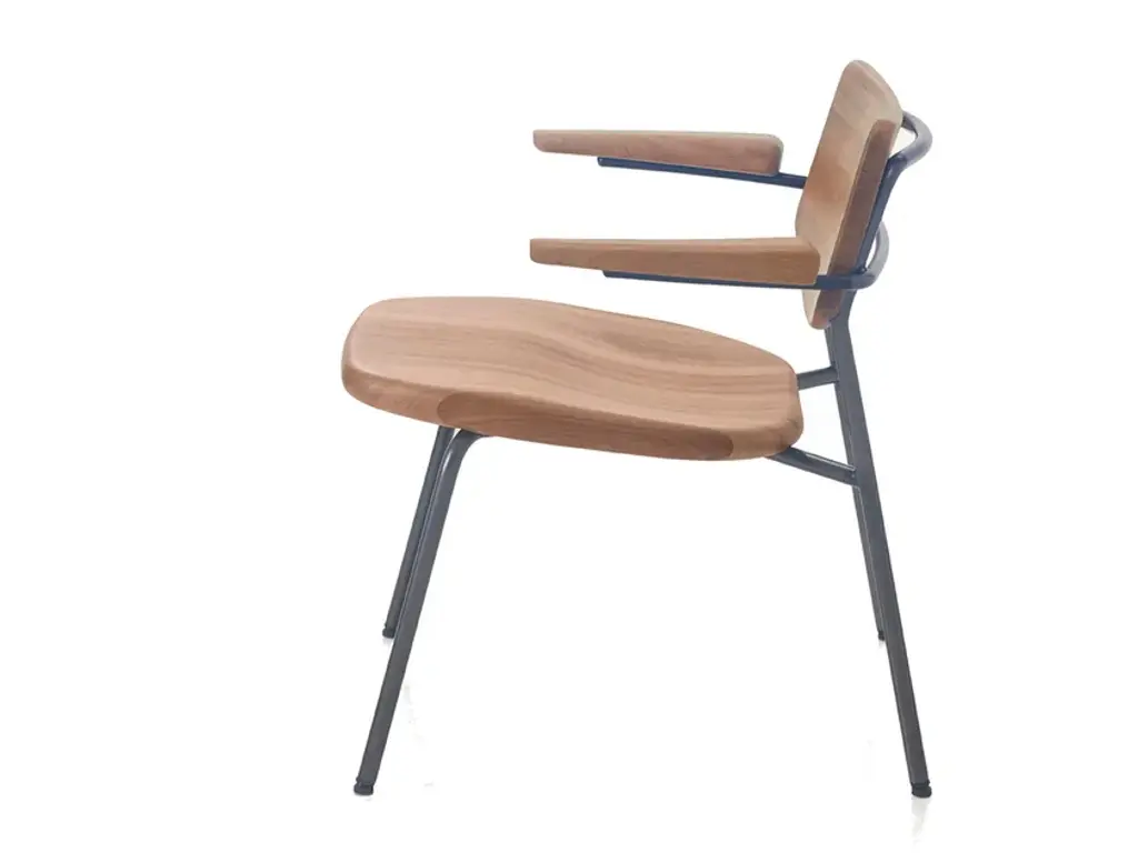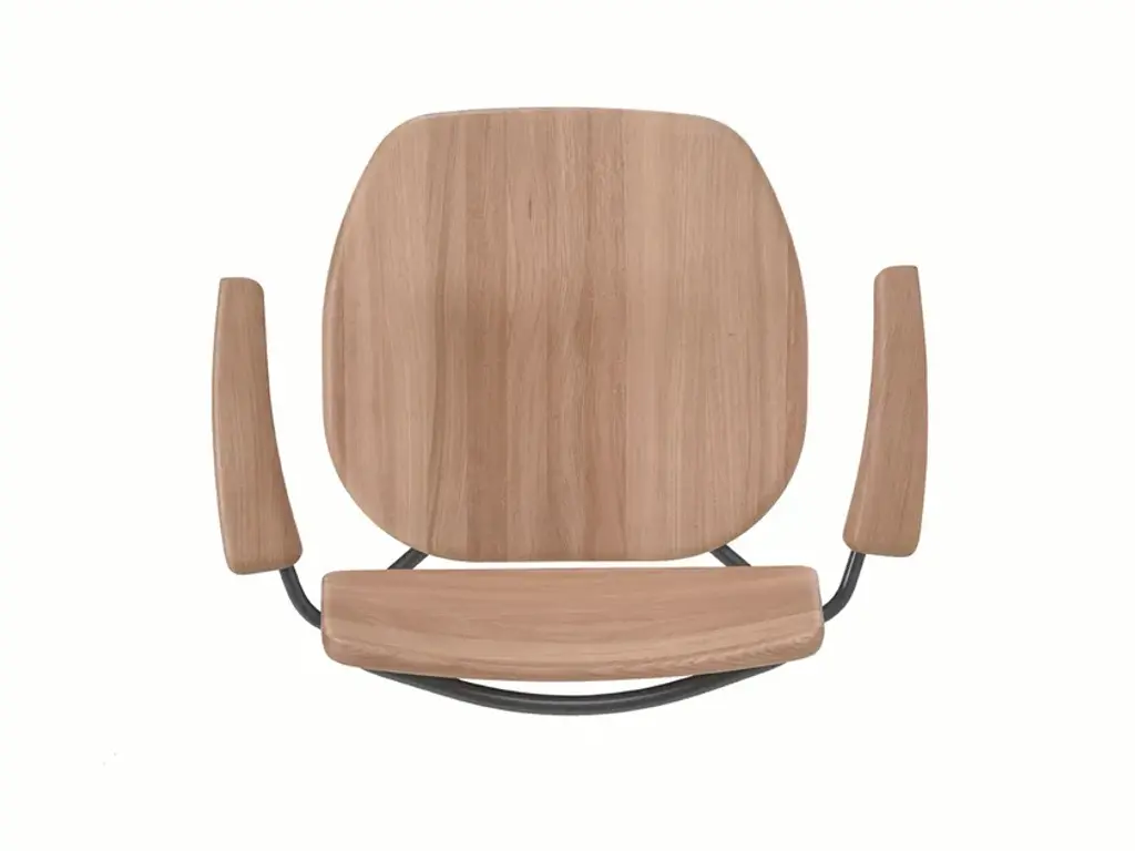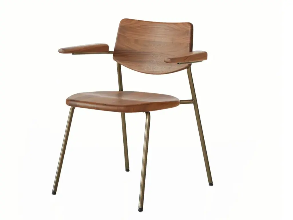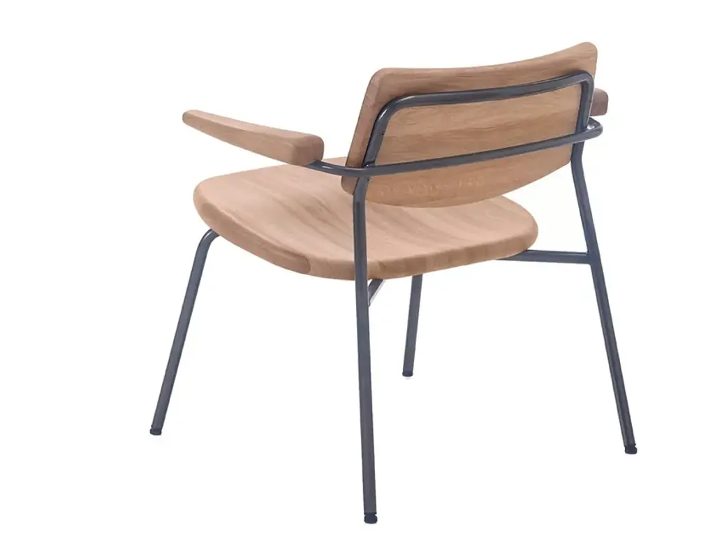 The Pipe Lounge Chair is a lounge chair with carved, solid wood seat, back, and arms with a nanoceramic coated stainless steel tubular frame. The chair is stackable, limited to four high and is available for outdoor use in certain wood types. Materials: Carved solid White Oak or Walnut. Base Options: Tubular stainless steel, or Satin Nickel, Bronze, Satin Brass, Gunmetal nanoceramic coated tubular stainless steel.The BassamFellows Pipe Chair Collection has the striking silhouette and strength of an A-frame stance. The tubular stainless-steel structure holds solid wood seat and back panels that are carved in two directions. From the perspective of the sitter, the seat and back panels have carved, softened edges and are dished for ergonomic comfort while underneath, the panels are carved to integrate with the frame, melding two materials together – structure and wood. Originally the design brief required the chair to be stackable and appropriate for both indoor and outdoor use. The chair is stackable, limited to four high, and is available in outdoor versions in appropriate woods such as Teak or Iroko.
