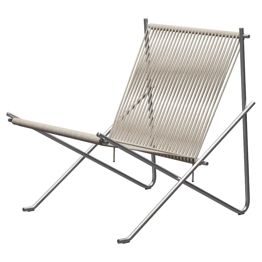 'Pk4' Lounge Chair For Fritz Hansen In Natural Flag Halyard With Steel Frame