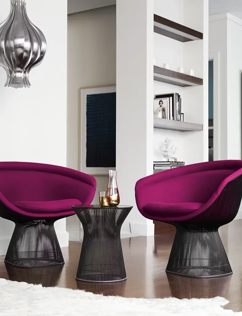 Warren Platner worked with design giants I.M. Pei and Eero Saarinen before developing his Platner Collection (1966), which reflects his belief that there's room in modernism “for the kind of decorative, gentle, graceful design that appeared in a period style like Louis XV." This airy steel wire collection, for which he devised the structure and production method, requires as many as 1,000 welds per piece to create. Made in Italy.