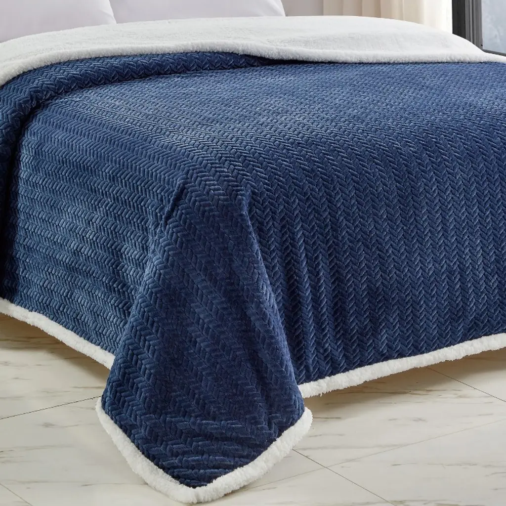 Plazatex Jacquard Microplush Soft Premium Microplush, Braided Oversized All Season Blanket, Queen, Navy