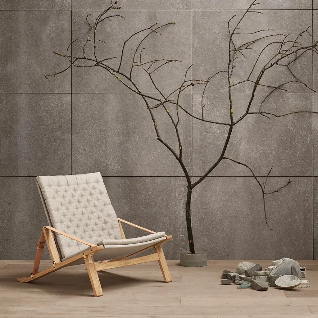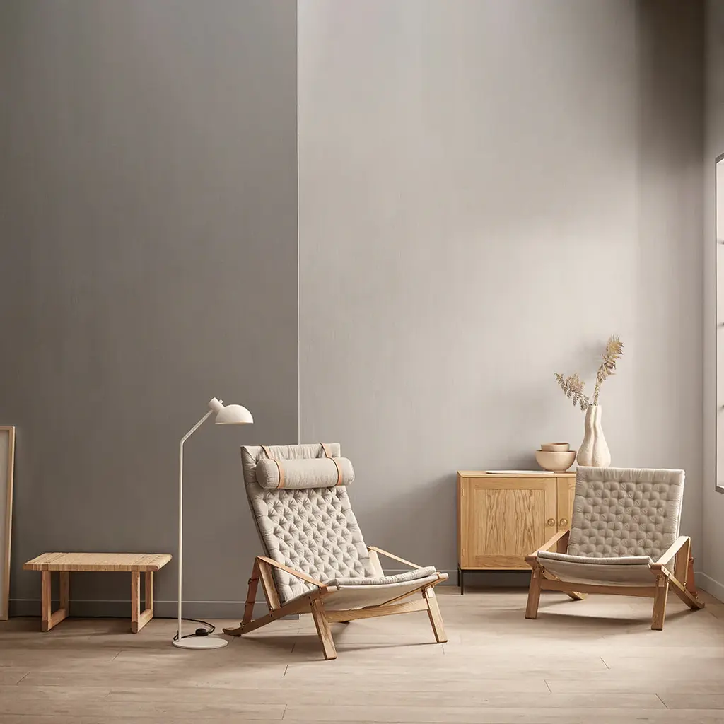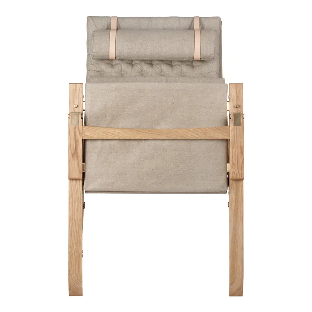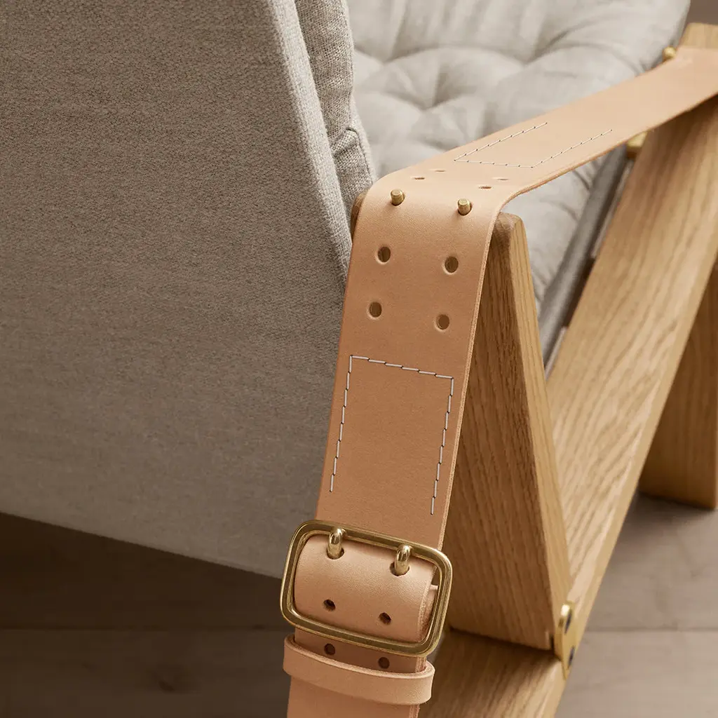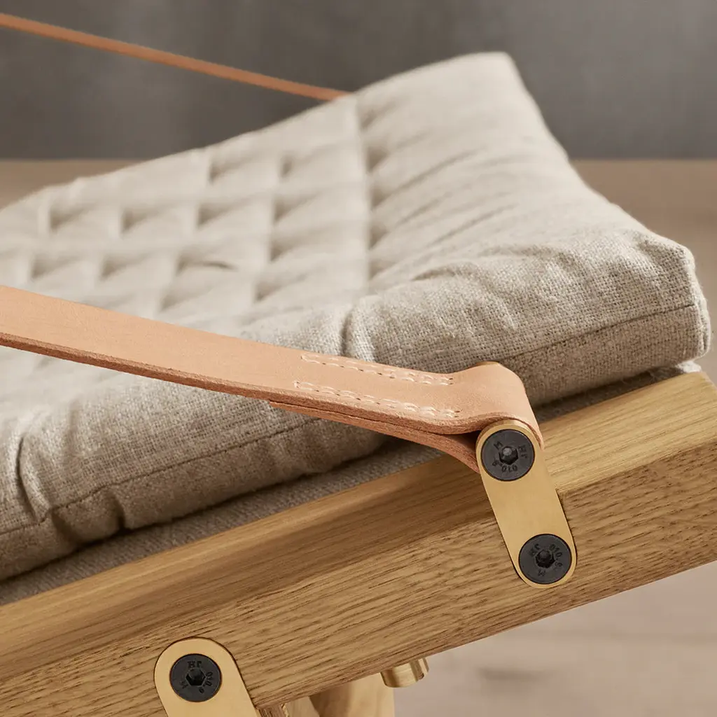 When designing the Plico Chair, Danish design duo Preben Fabricius and Jørgen Kastholm sought to create a chair that takes up as little space as possible when not in use while not compromising on comfort. Looking to highlight what other designers often seek to hide, they created a deceptively simple design with visible joints, beautiful brass fittings and accomplished craftsmanship. Available in a high and low back version, the solid oak frame and curved rear legs are shaped for stability. The back and seat, fitted with corresponding cushions, are upholstered in stitched linen canvas to provide an elegant expression and supreme sitting comfort. The adjustable backrest folds completely and saddle leather armrests complete the design, giving it a distinctive expression full of character. The Highback version of the chair includes a neck cushion.