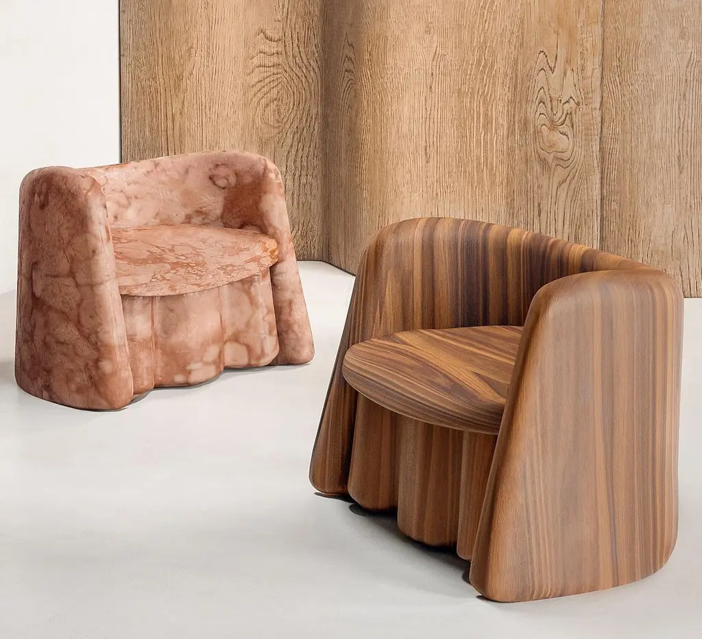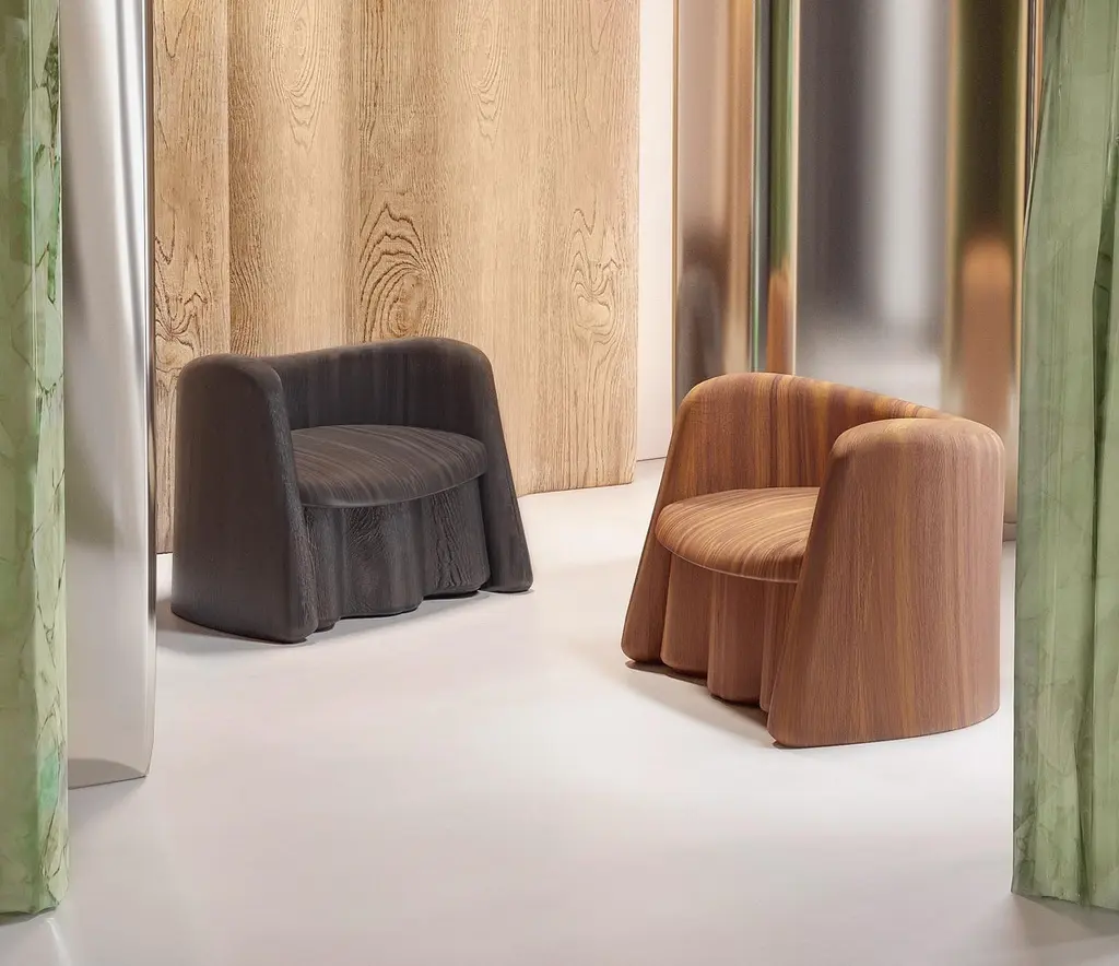 Plisse Walnut Accent Chair By Alter Ego Studio