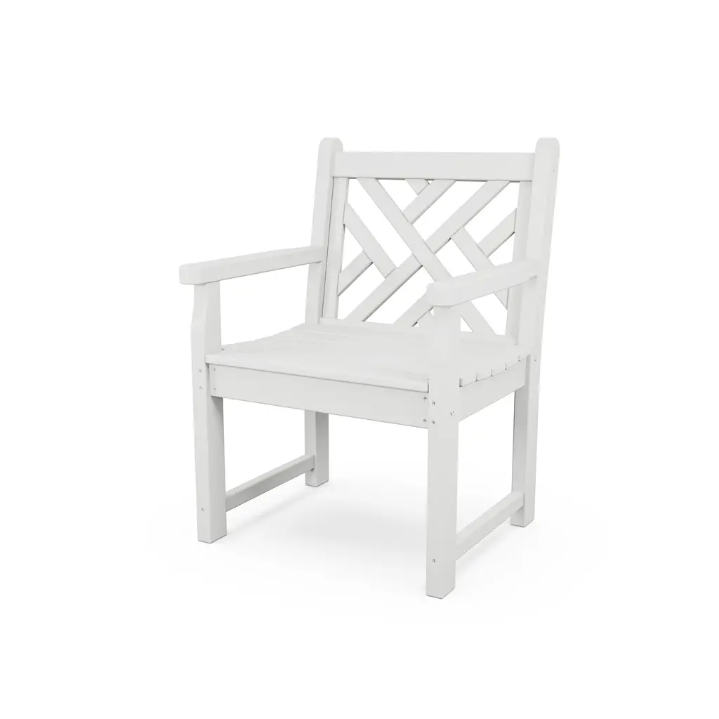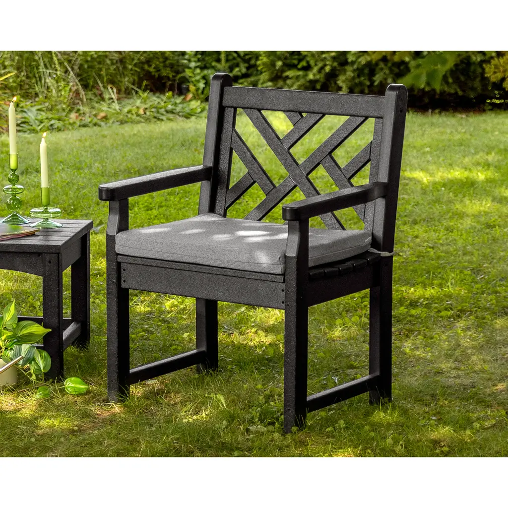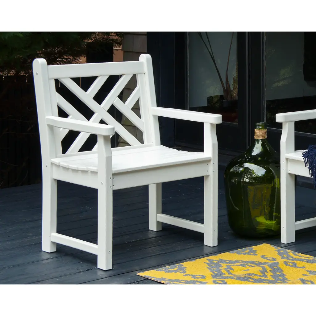 Add stylish comfort and sturdy elegance to your outdoor space with our Chippendale Garden Armchair. Featuring a unique lattice X-back pattern, this chair brings a touch of modern flair while maintaining the timeless look of classic outdoor furniture. Built with durable, weather-resistant materials, this chair is designed to hold up beautifully in all seasons, from sunny days to rainy afternoons. The wide armrests and contoured slats provide a comfortable seating experience, making it perfect for lounging or enjoying meals with family and friends. Choose from a range of rich, fade-resistant colors to match your personal outdoor style and create a space that’s both inviting and durable. 300 lbs. weight capacity
