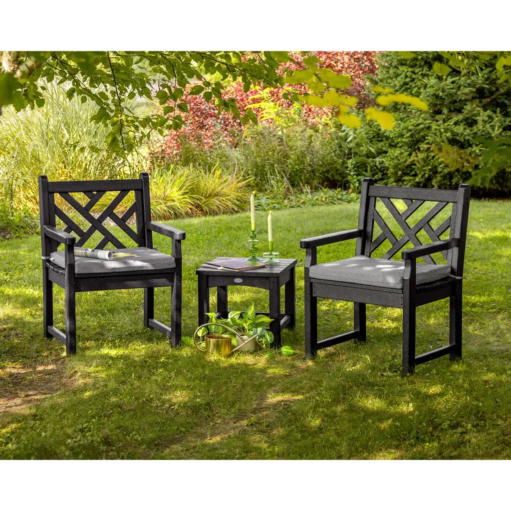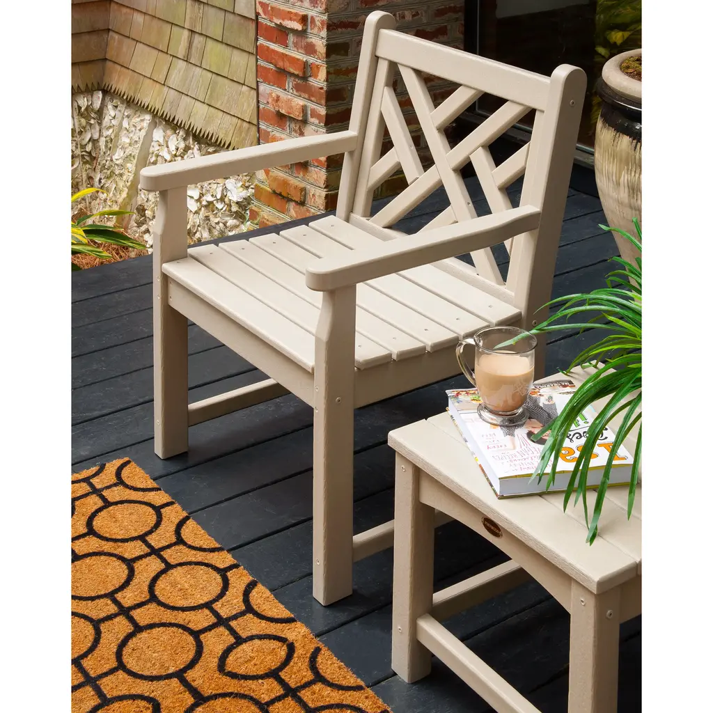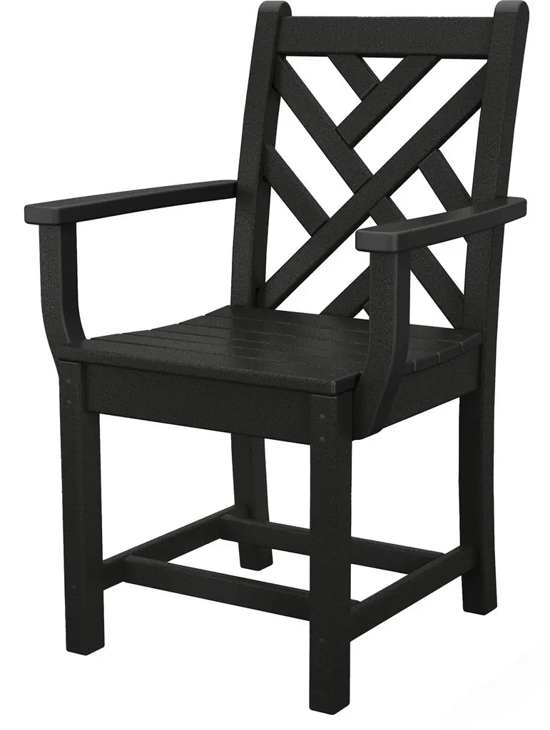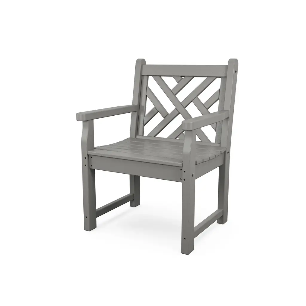 Add stylish comfort and sturdy elegance to your outdoor space with our Chippendale Garden Armchair. Featuring a unique lattice X-back pattern, this chair brings a touch of modern flair while maintaining the timeless look of classic outdoor furniture. Built with durable, weather-resistant materials, this chair is designed to hold up beautifully in all seasons, from sunny days to rainy afternoons. The wide armrests and contoured slats provide a comfortable seating experience, making it perfect for lounging or enjoying meals with family and friends. Choose from a range of rich, fade-resistant colors to match your personal outdoor style and create a space that’s both inviting and durable. 300 lbs. weight capacity