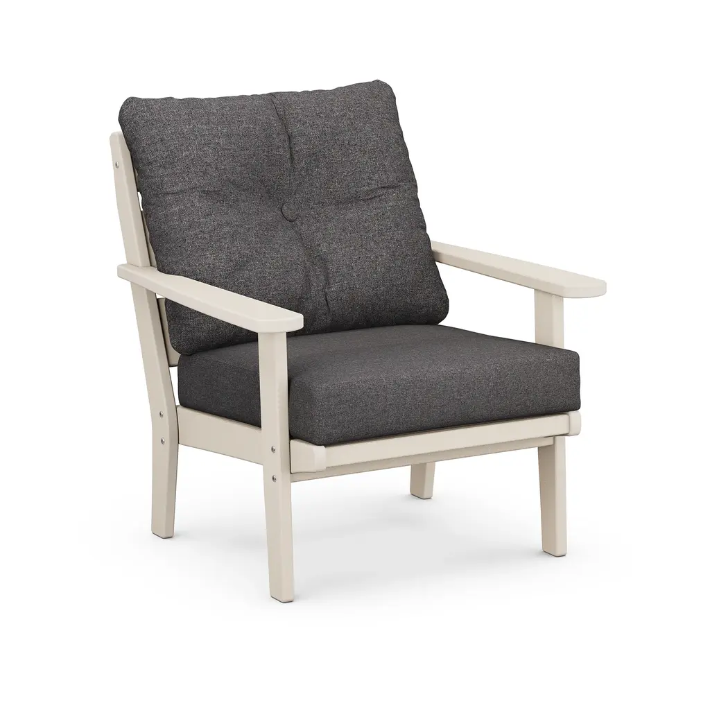 Bring the calming tranquility of the lakefront to your backyard with a pair of our Lakeside Deep Seating Chairs. Plush tufted seat cushions sit atop a durable genuine POLYWOOD® lumber frame complete with marine-grade hardware. This all-weather outdoor seating chair is mildew-resistant and fade-resistant against a wide range of elements, including hot sun, high winds and heavy snow. The simple clean lines and polished design of this expertly fashioned American-made outdoor chair will make any backyard feel like an easygoing day at the lake.