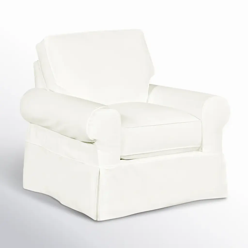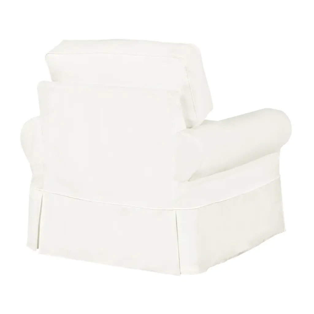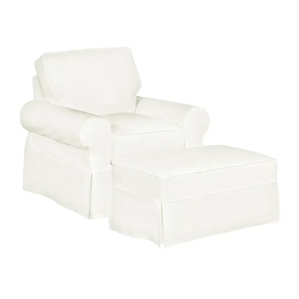 There’s something so relaxed about a slip-covered armchair. This piece from our collection features rolled arms, a kiln-dried hardwood frame, and down-blend reversible cushions for the ultimate comfort. Add an ottoman to complete the look!