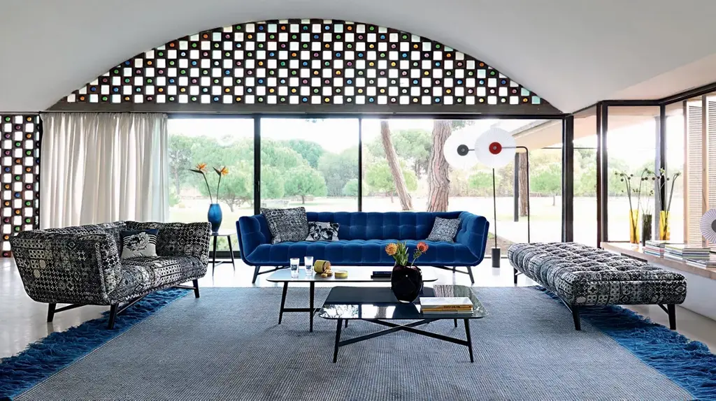 Profile is a timeless model designed by Roberto Tapinassi & Maurizio Manzoni. It combines 1950s inspired shapes with a uniquely contemporary base. The velvet upholstery is fully tufted and available in a wide range of colours. It is available in many dimensions of sofas, ottomans, and lounge chairs.