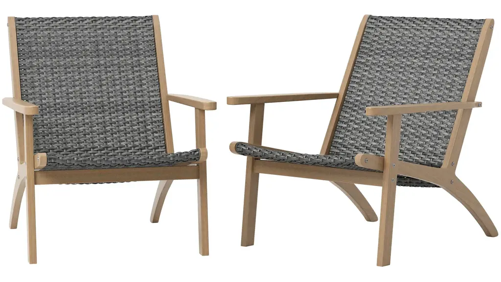 Radius Patio Side Chair - Set of 2 is engineered for both style and endurance, making it a standout choice for your outdoor space. Acacia's natural resilience ensures these chairs hold up against weather, while the multistep finishing process enhances the wood's rich grain and provides a smooth, polished feel. The sleek, weather-resistant gray wicker pairs beautifully with the warm wood accents, creating a sophisticated contrast that brings modern flair to your patio or garden. Thoughtfully designed with gently sloped backrests and supportive armrests, these chairs offer ergonomic comfort perfect for long, leisurely afternoons outdoors. Combining premium materials with timeless design, this set offers a durable yet stylish solution for transforming your outdoor living space into a true retreat.