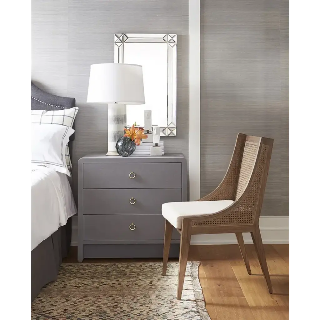 With classic profiles and light, natural materials, our Raleigh Collection embraces old school charm—with a few upscale updates, of course. The Raleigh Armchair is both relaxed and refined, featuring a sustainably-sourced frame of Cape Lilac Mahogany with a rustic driftwood finish. Our masterful craftsmen have fashioned a gracefully sloping silhouette which not only ensures the feeling of comfort, but the look of ultimate elegance. Artisanally hand-tied caning has been applied to its back and sides, lending the Raleigh a luxuriously organic look fit for a modern farmhouse or breezy beach home. Other details include gently tapered and angled legs in the mid-century style and a plush linen drop-in cushion for chic comfort and cool neutrality.
