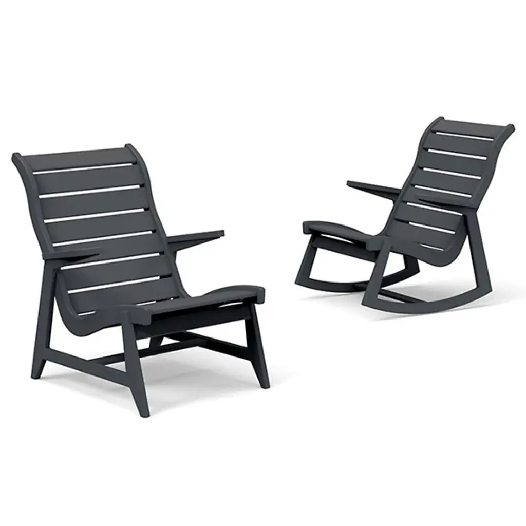 Back in 1939, Ralph Rapson designed the Rapid Rocker, distinguished by the form-fitting curves of its frame. This iconic mid-century modern design inspired the Loll Designs Rapson High Back Outdoor Lounge Chair. This lounge replicates the original's lovely, comfortable curves but, instead of wood and fabric, is made out of eco-friendly recycled milk jugs and non-recycled HDPE.